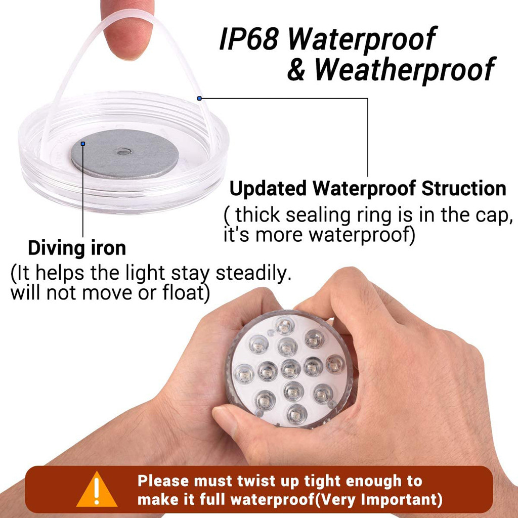 [Светодиодный погружной светильник с большими присосками]: IP68 Водонепроницаемые погружные светильники с большими Крепкие присоски (30 мм), Модернизированная полностью Водонепроницаемая структура, она хорошо работает как во влажной, так и в сухой Места, такие как светильник для бассейна, светильник для пруда, ванна, гидромассажная Ванна, лодка, Основа, аквариум, аквариум, ваза, цветочный горшок, водопад, и Прихожая, подвал, гараж, состояние, свадьба, событие, вечерние, как Декор Светильник, Атмосферный светильник, или ночной Светильник для внутреннего и наружного декора.