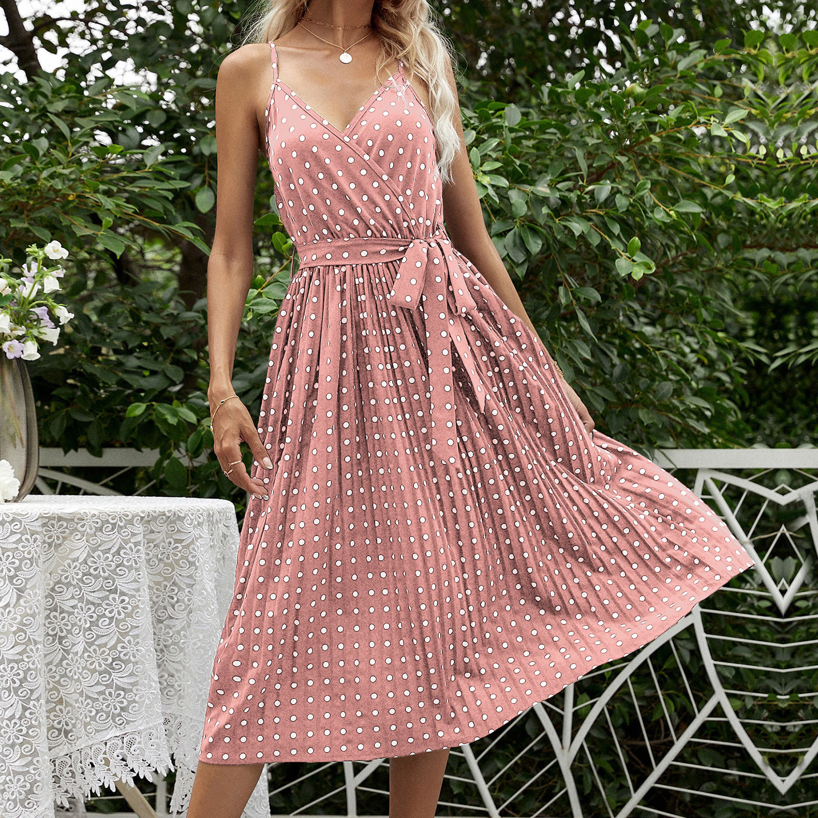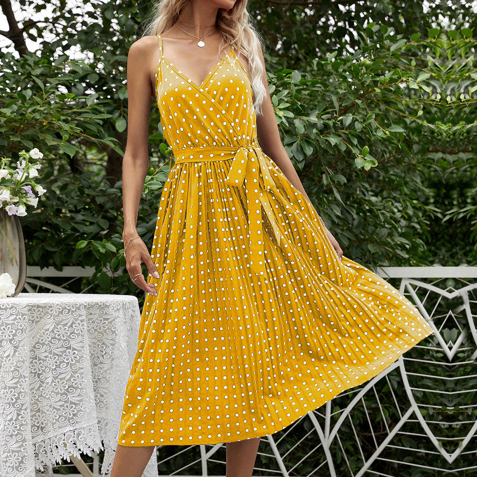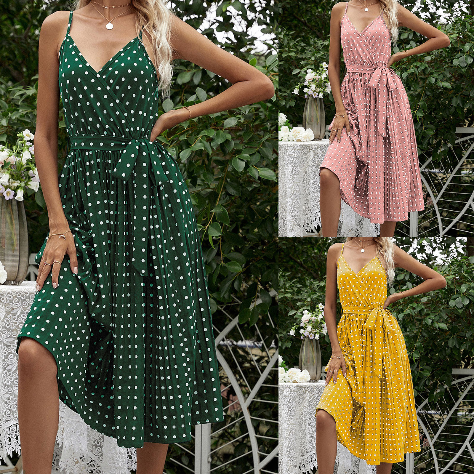 2021 новые женские летние сарафаны с модным принтом в горошек с длинным рукавом и v-образным вырезом Повседневные Вечерние платья на бретелях