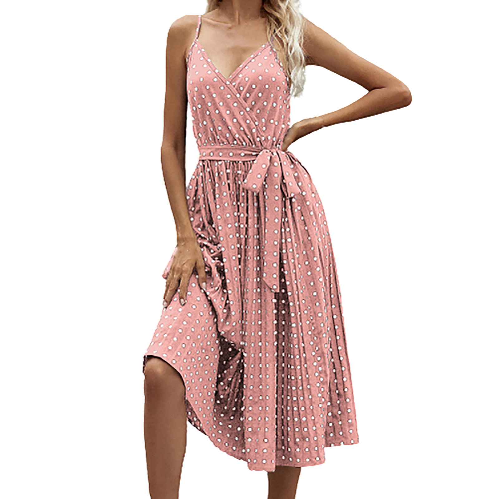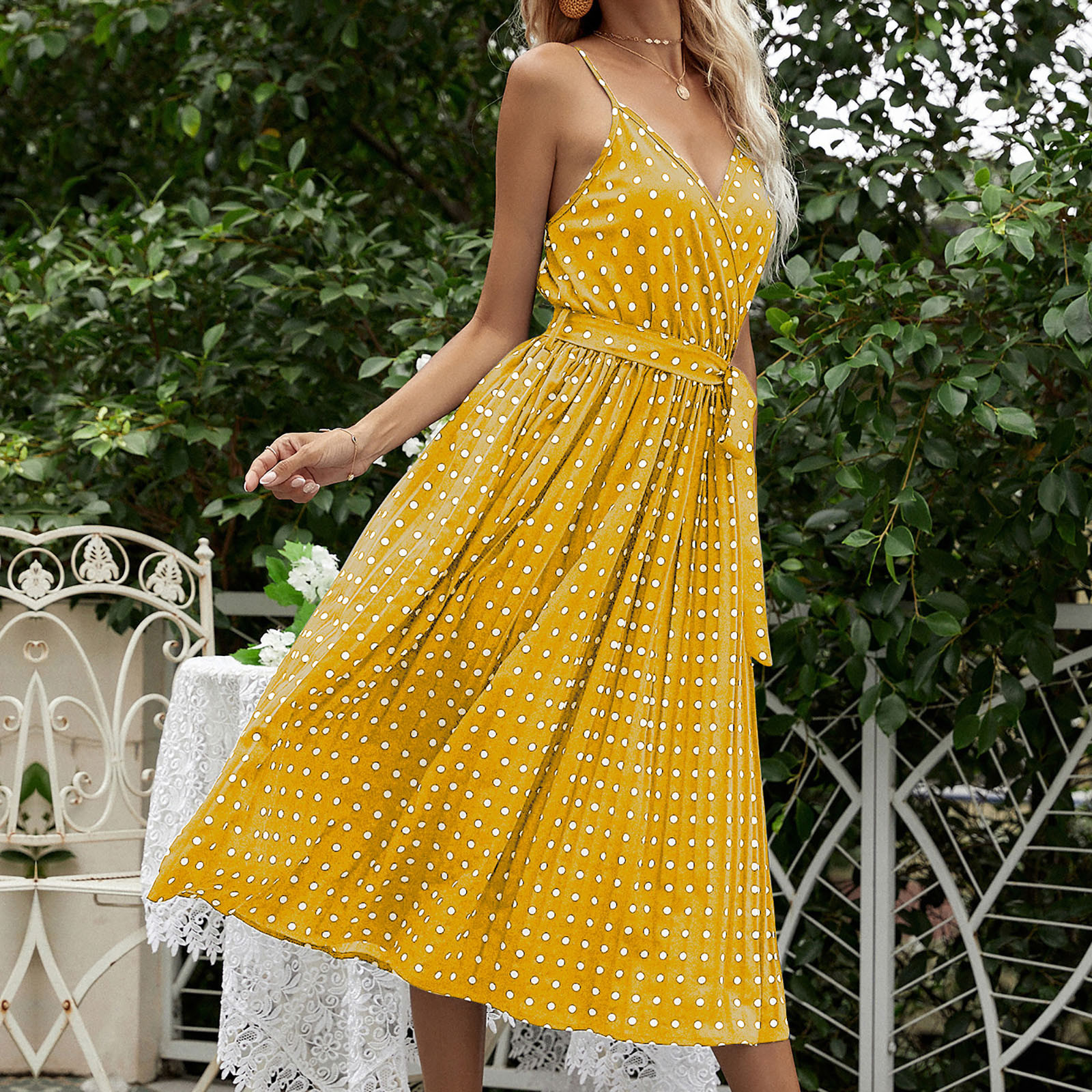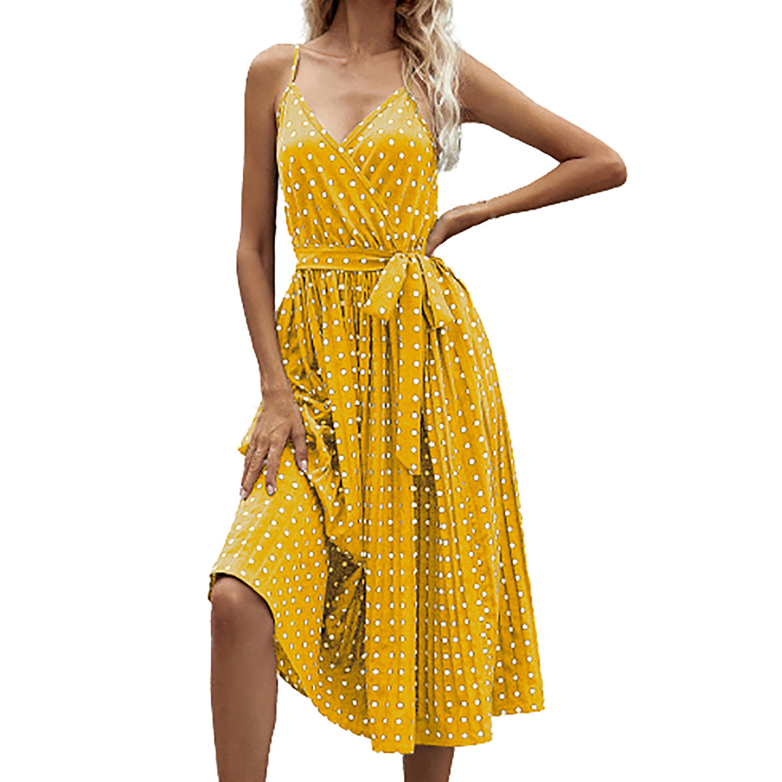2021 новые женские летние сарафаны с модным принтом в горошек с длинным рукавом и v-образным вырезом Повседневные Вечерние платья на бретелях