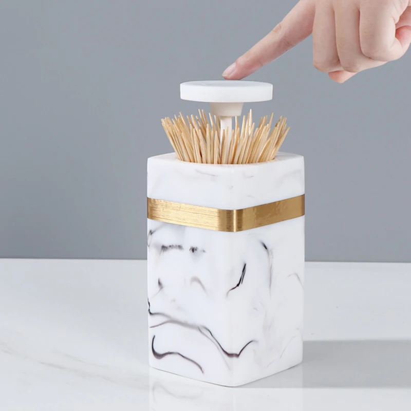 Мраморный держатель зубочистки коробка для хранения смолы роскошный Пресс автоматический Push футляр для зубочисток дома гостиной ресторана Декор коробка