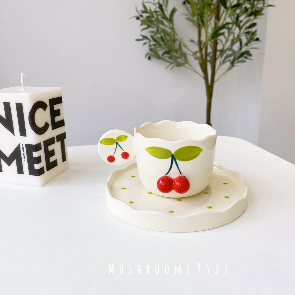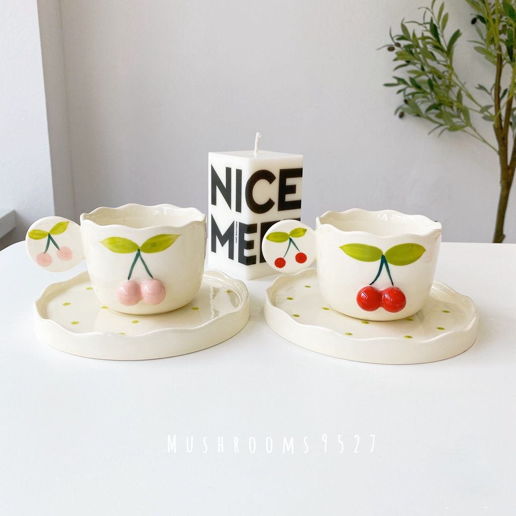 Девчачье сердце Милая ручная роспись вишня кофейная чашка и блюдце