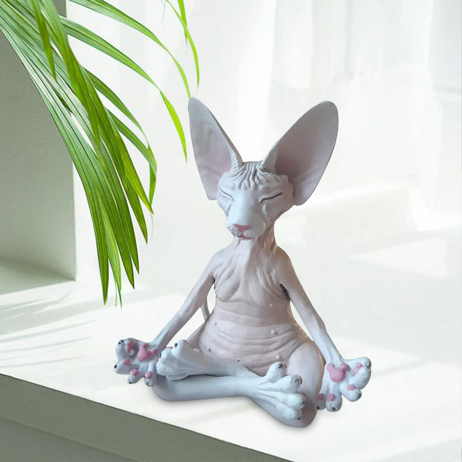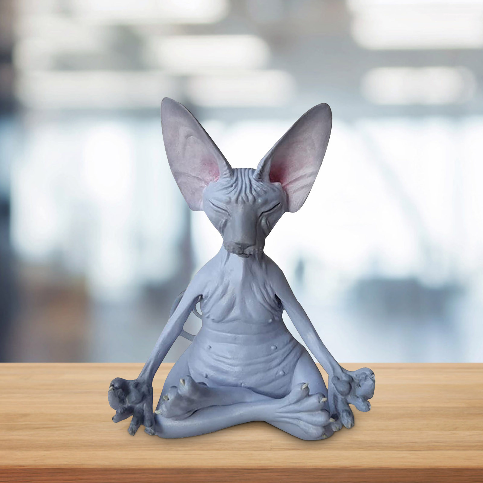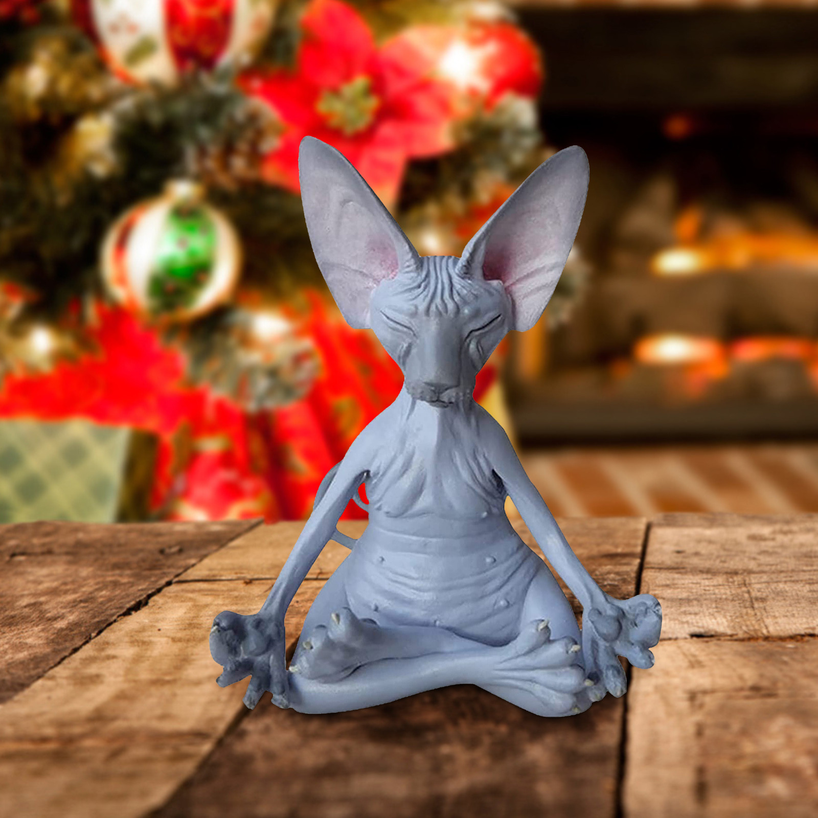 Причудливый Сфинкс Кот в позе йоги. Мило до крайности, когда вы медитируете с ним рядом, вы тоже будете очень счастливы. Идеальный подарок для любителей кошек или йоги.