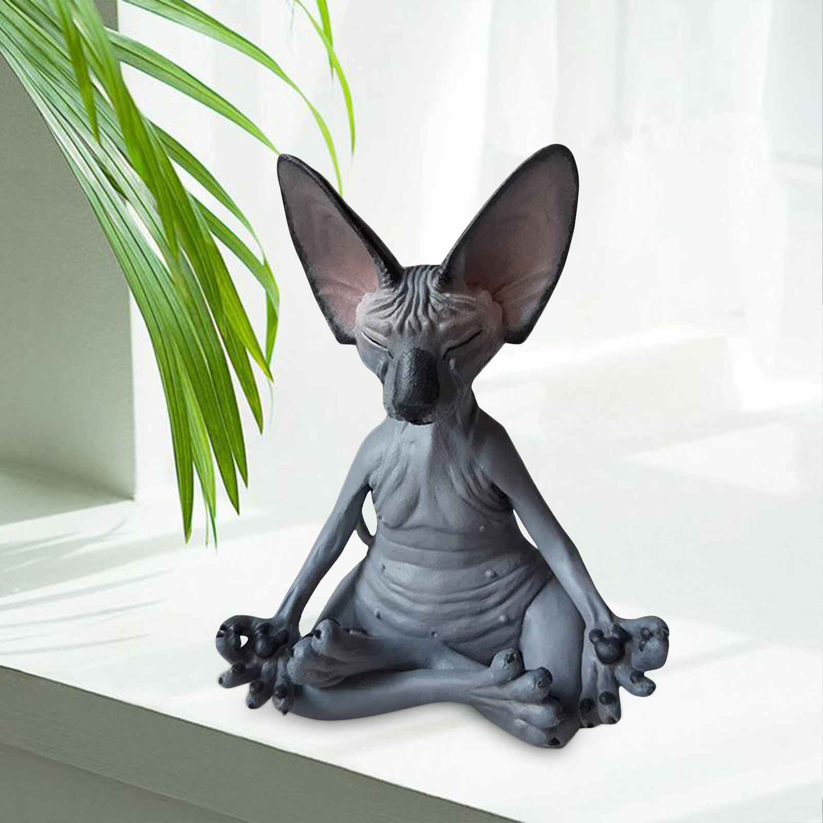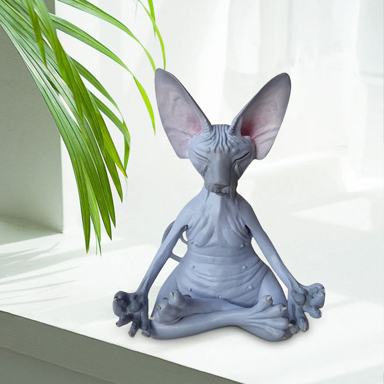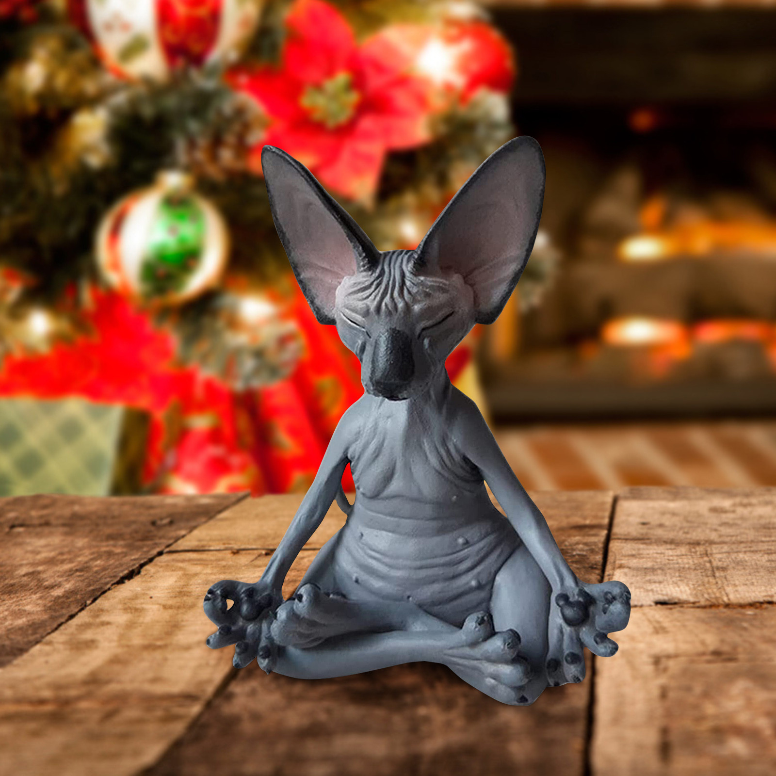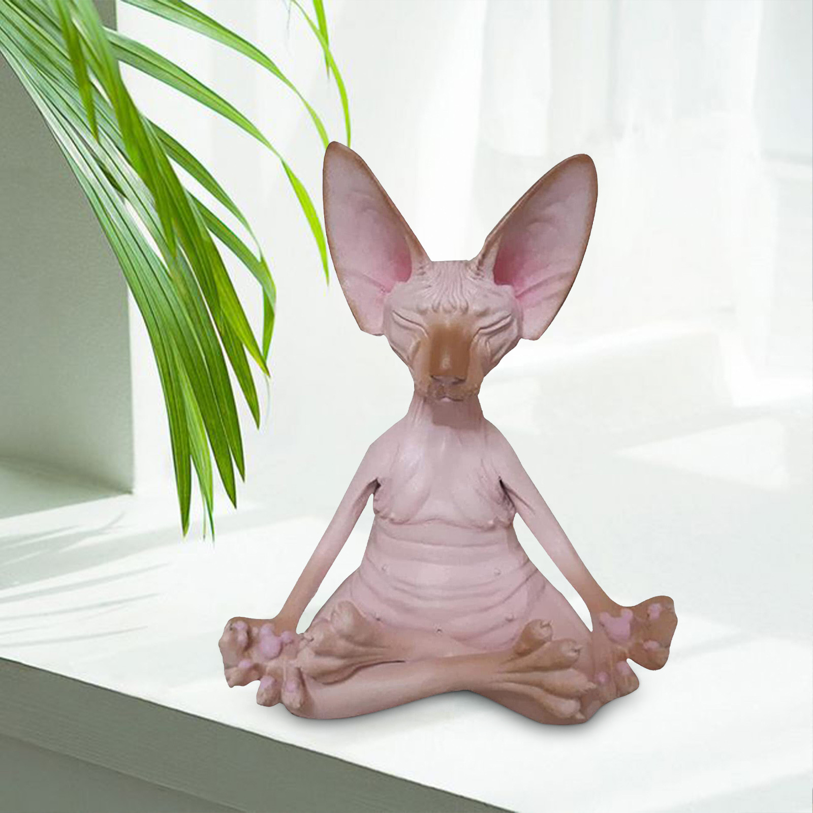 Причудливый Сфинкс Кот в позе йоги. Мило до крайности, когда вы медитируете с ним рядом, вы тоже будете очень счастливы. Идеальный подарок для любителей кошек или йоги.