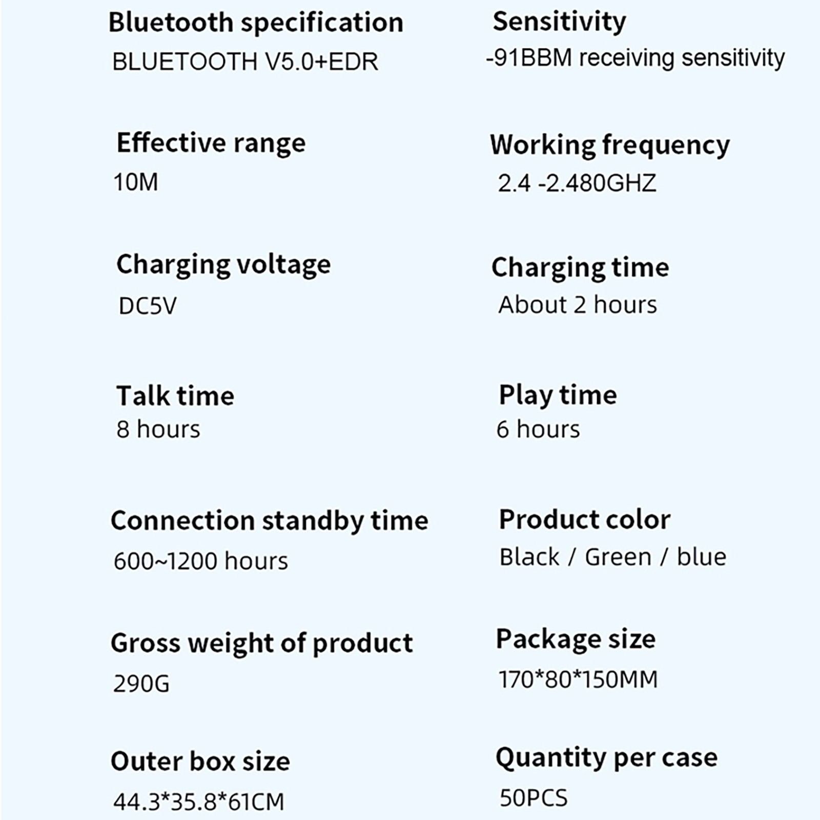 Using Bluetooth V5.0, greatly improving the compatibility of device pairing, the most reliable connection stability, the fastest transmission speed, and stable, high-light, durable data transmission Compatibility Bluetooth headsets are compatible with Bluetooth devices such as mobile phones, laptops, iPads, etc. 500 hours of long standby, up to 8 hours of talk time, up to 6 hours of music playback, durable High dynamic bass response, providing you with truly natural and more realistic sound quality The updated professional active noise reduction technology greatly blocks the outside world and brings you pure music It adopts both wireless and wired connection modes, which can be switched by itself, long-lasting battery life, and enjoy music Adjustable head length, protein soft high-elastic ear cushions, comfortable to wear, cut off external sounds, long-term use specification: Bluetooth version: V5.0 Distance: 10m Speaker: 40mm copper ring Charging voltage: DC 5V Charging time: 2h Playing time: 6h Working frequency: 2.4-2.480GHz Sensitivity: -91BBM Color: black, green, blue product Size: 160x140x70mm product Weight: 200g Packing size: 170x150x80mm Package weight: 290g Contain: 1X Earphone 1X Charging cableБеру уже несколько раз с АлиЭкспресса ,через этот сайт. Очень довольна доставкой. Качество как всегда не подводило. Заказ приходит быстро... Читать отзыв полностью...