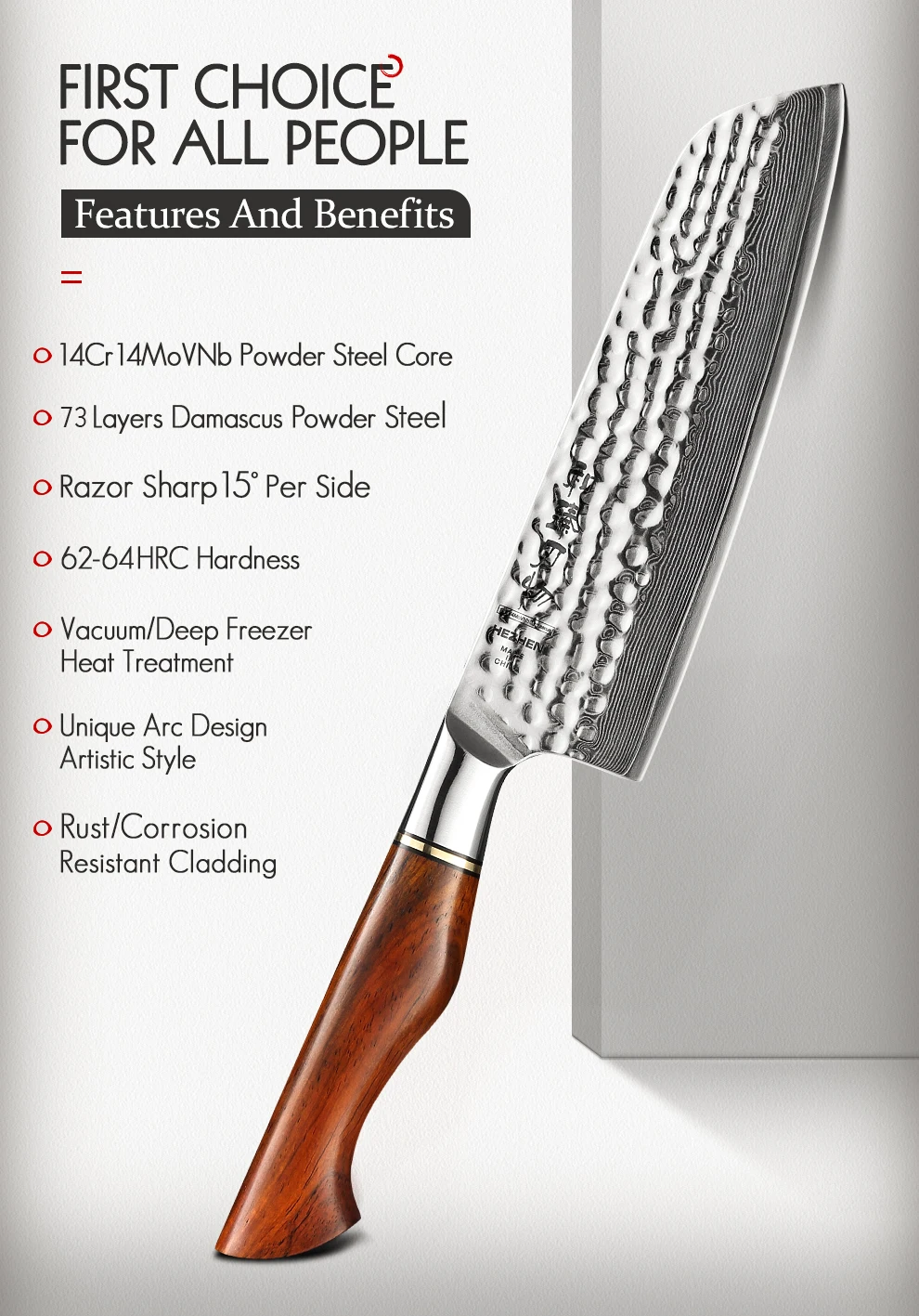HEZHEN Мастер серии 73-Слои косметическая пудра Дамаск Сталь Santoku Ножи