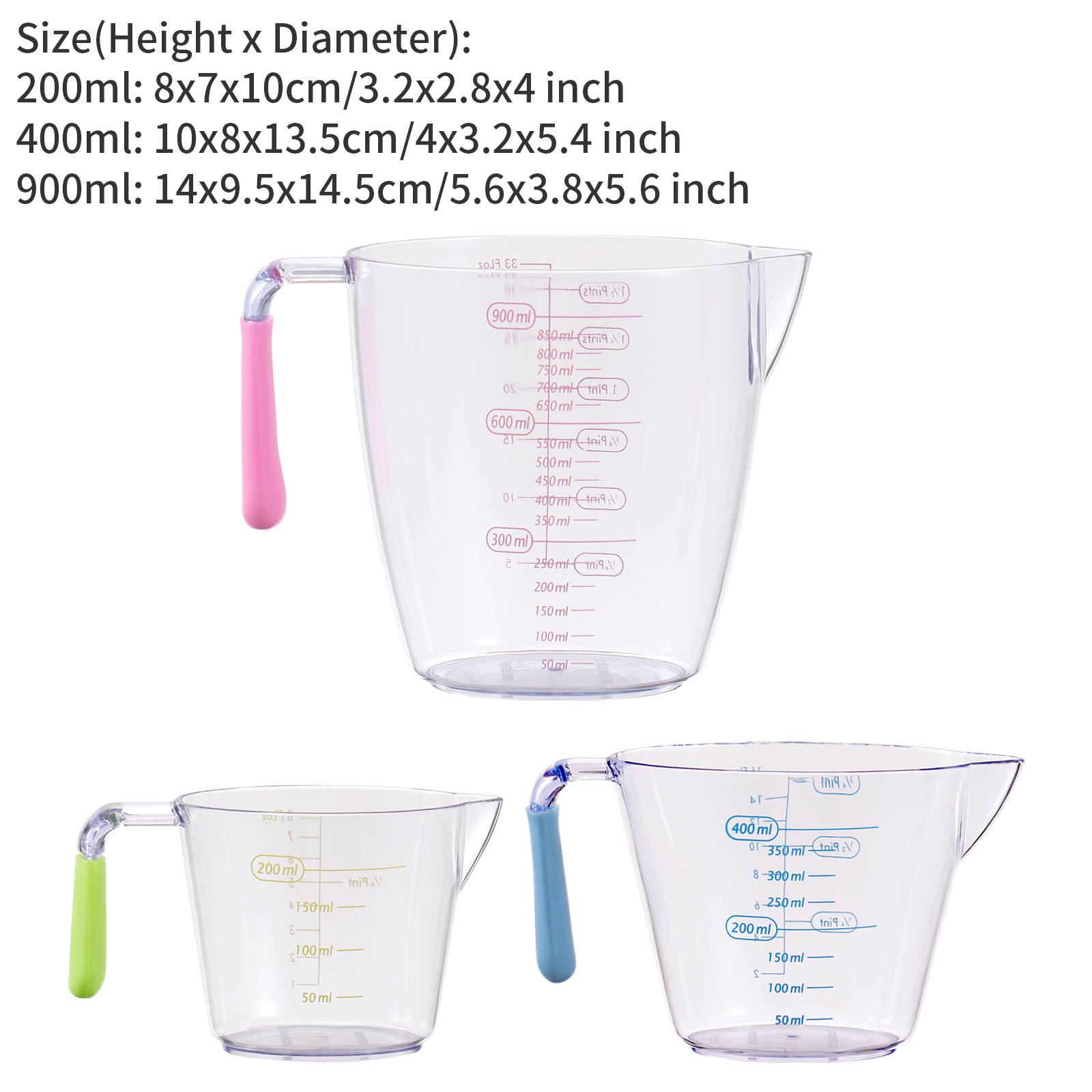 1 набор прозрачных твердых пластиковых градуированных мерных стаканчиков овальные штабелируемые с угловой ручкой и носиком для мукомольного масла