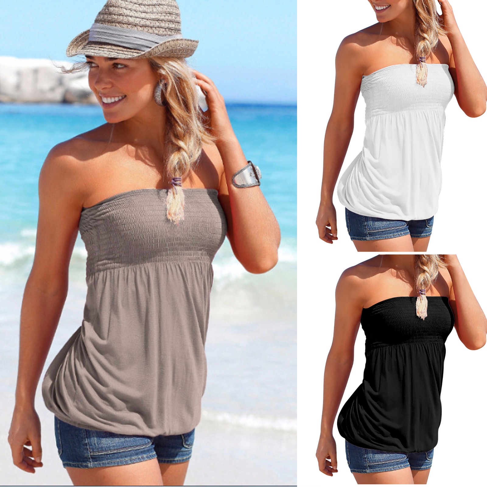 Женская плиссированная блузка без бретелек без рукавов, летняя Однотонная рубашка