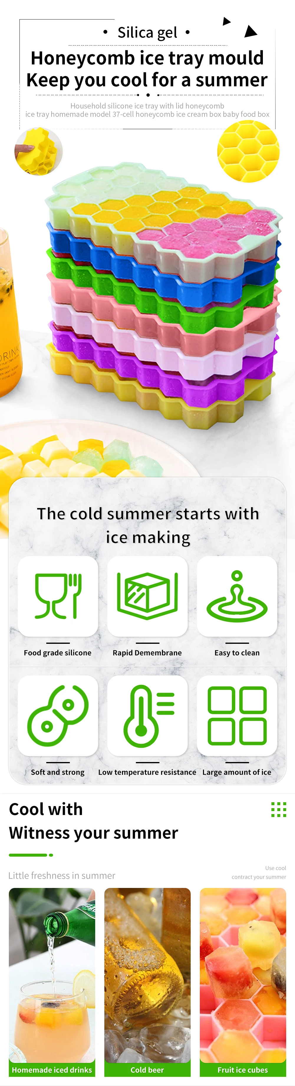Meijuner Silicone Honeycomb Ice Cube Trays with Removable Lids Silicone Healthy Ice Cube Mold without poision
