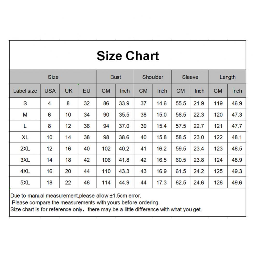 [Наш Размер XXXL] Бюст: 106 см/41,73 дюйма, Плечи: 42 см/16,54 дюйма, рукав: 60,5 см/23,82 дюйма, длина: 124 см/48,82 дюйма (прибл.)