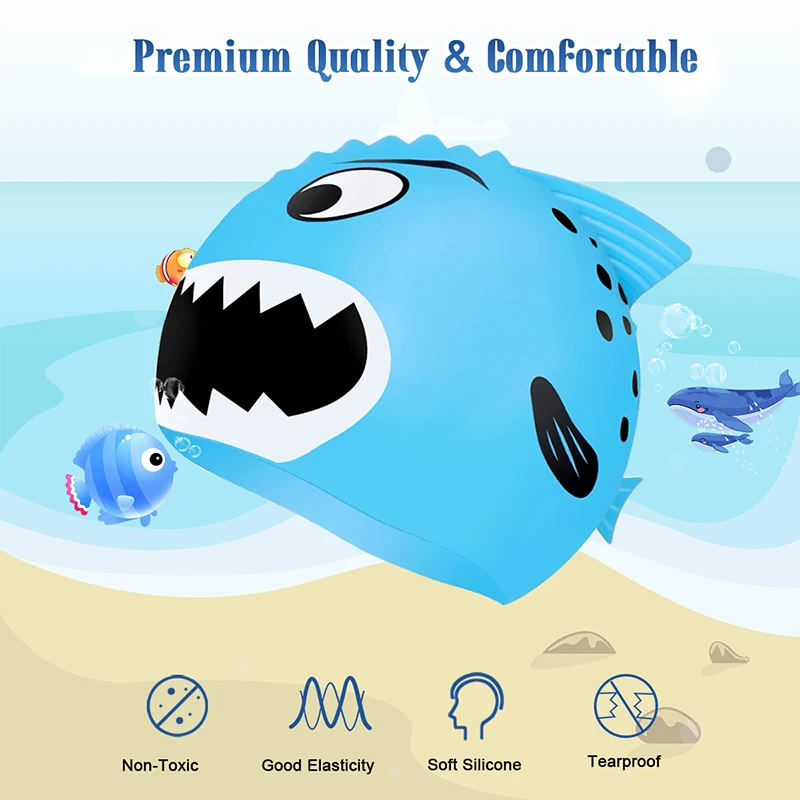 Waterproof Protection: 3D ergonomic design can completely cover kid’s ears and hair.Safety & Premium Material: Our swim cap is made of 100% premium silicone material, eco-friendly, non-toxic, tear resistant and durable.