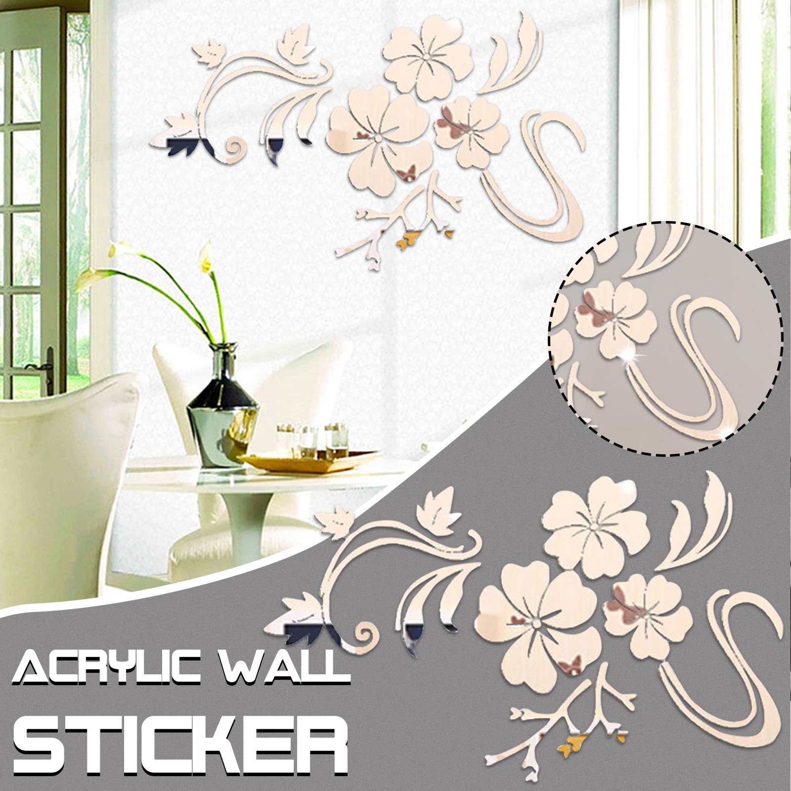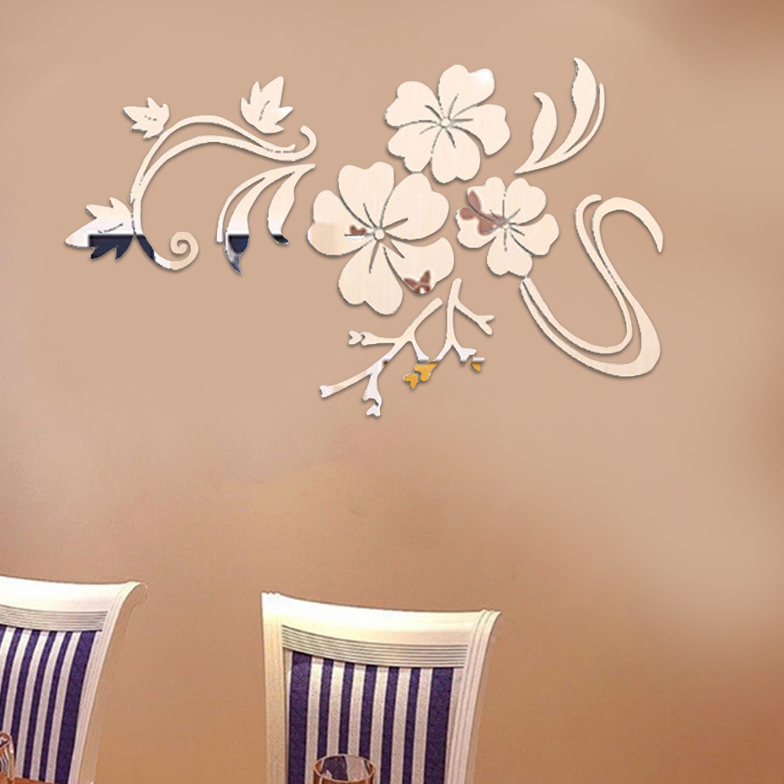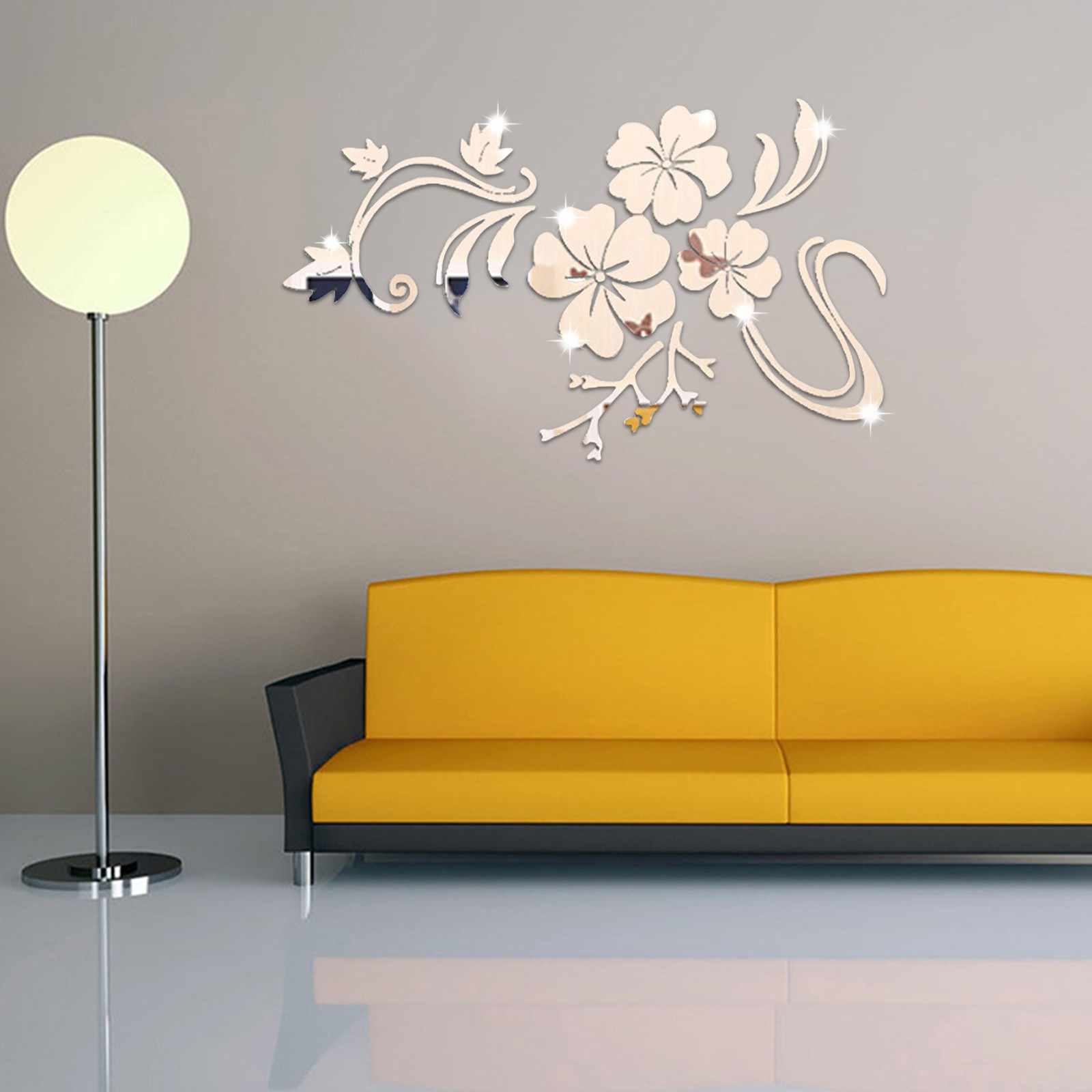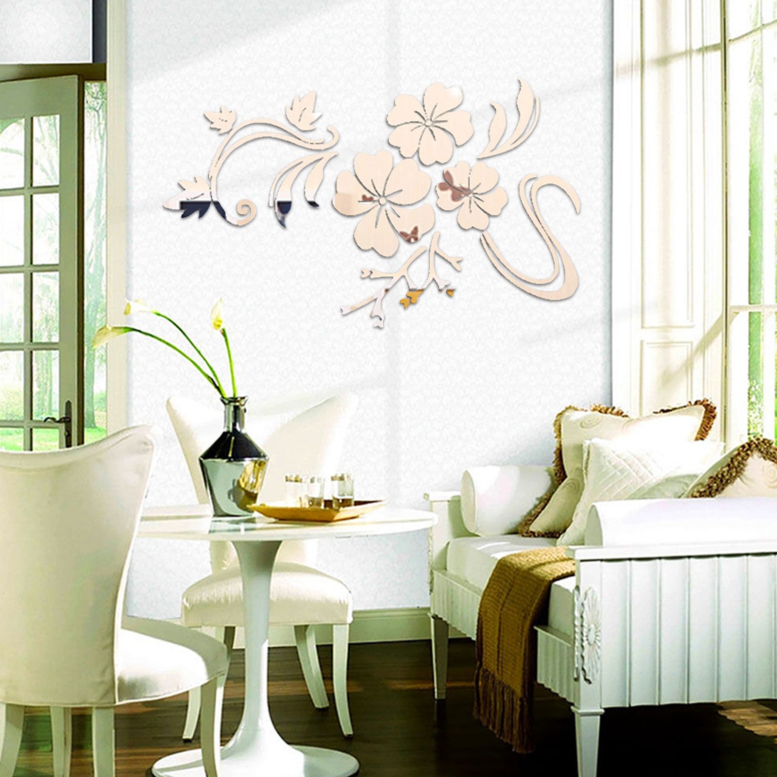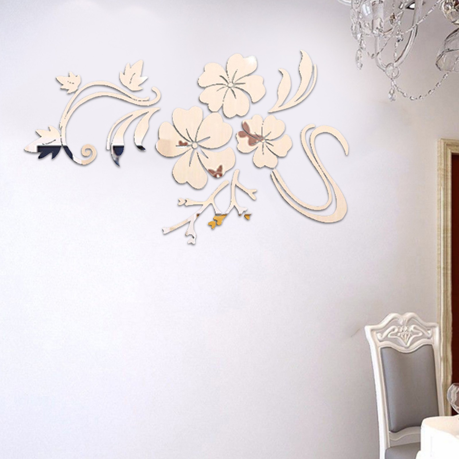 3D Wall Sticker Mirror Flower Wall Art Sofa Mural Acrylic Home Decoration Silver