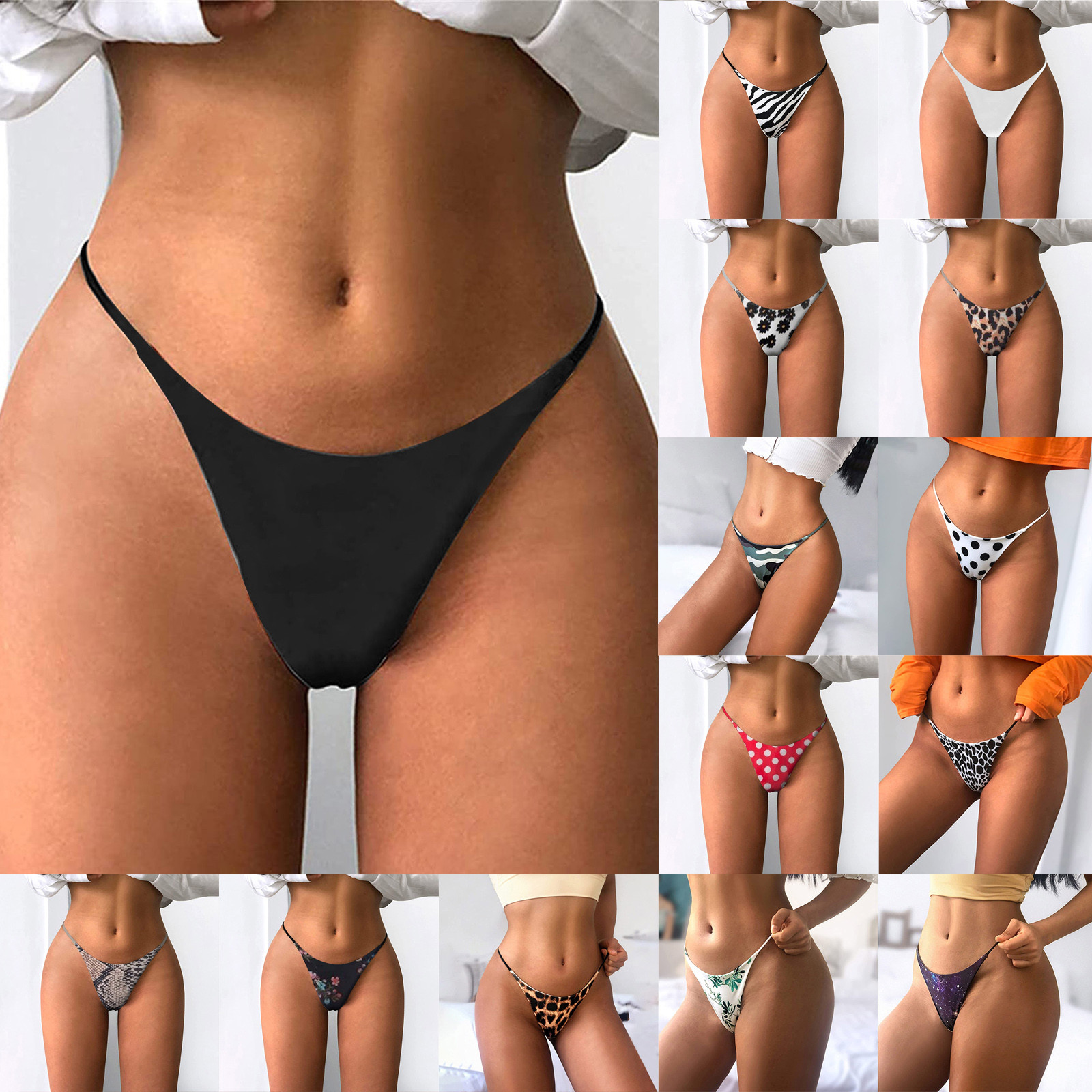 Женские летние повседневные стринги с низкой талией, бикини с принтом, трусики, трусы