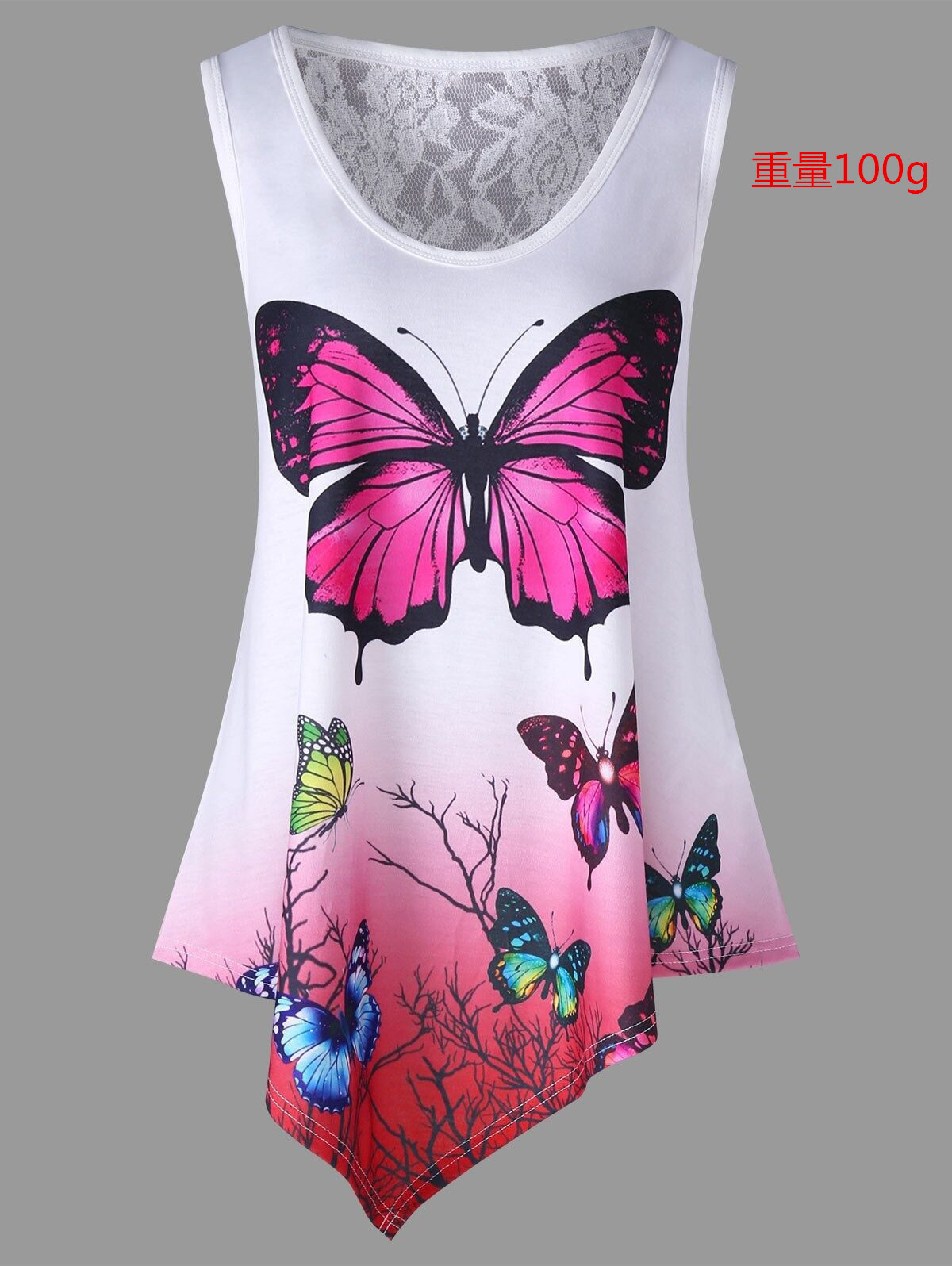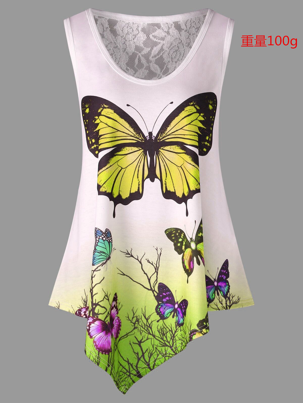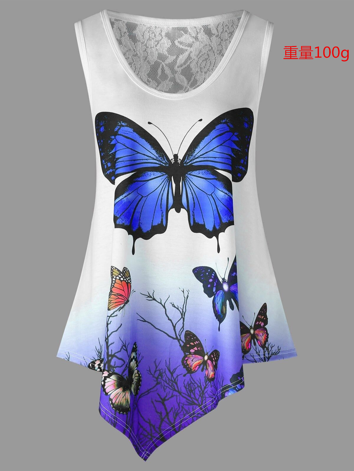 Женский топ с цветочным принтом и бабочками размера плюс, летний топ без рукавов с кружевной вставкой, модные повседневные топы 2021