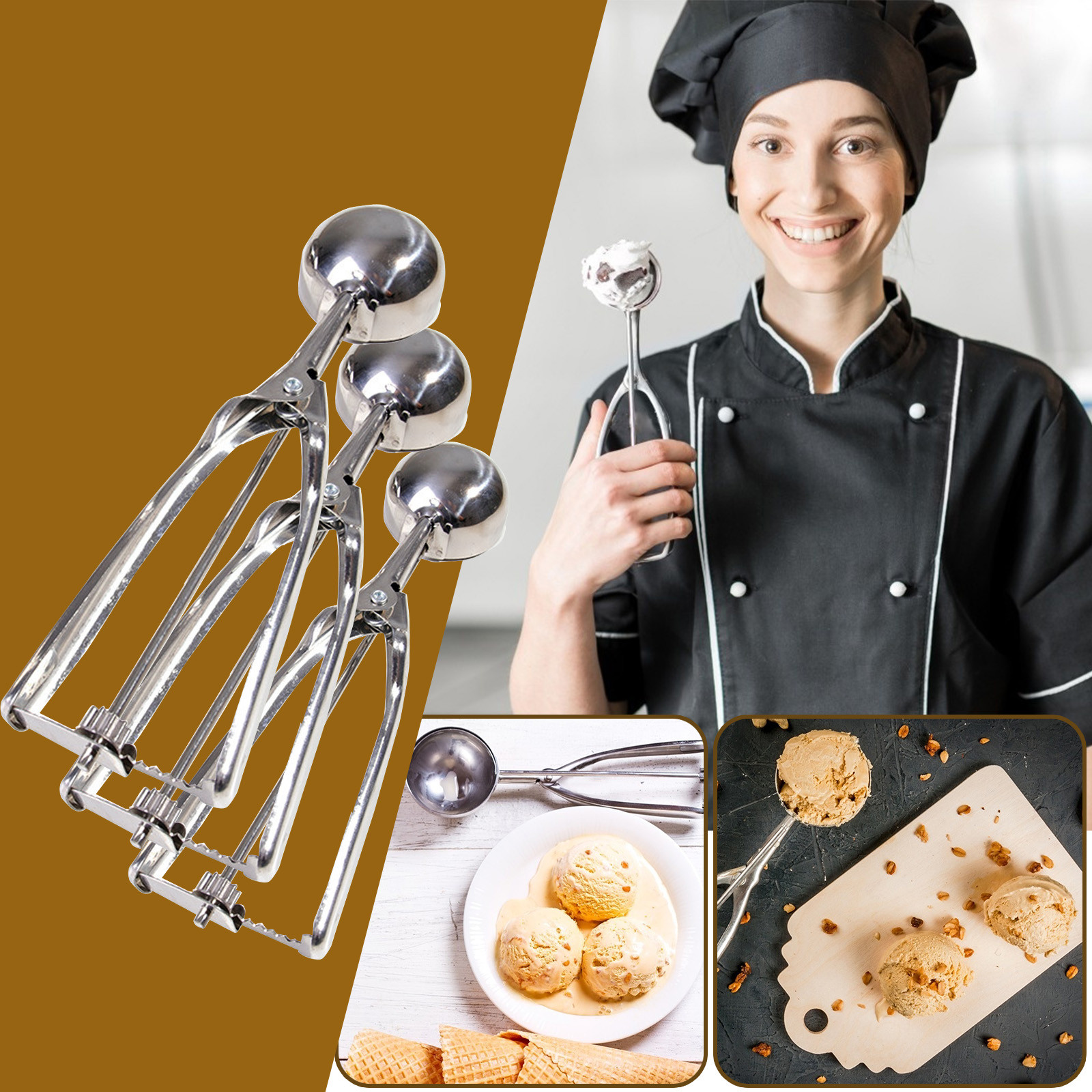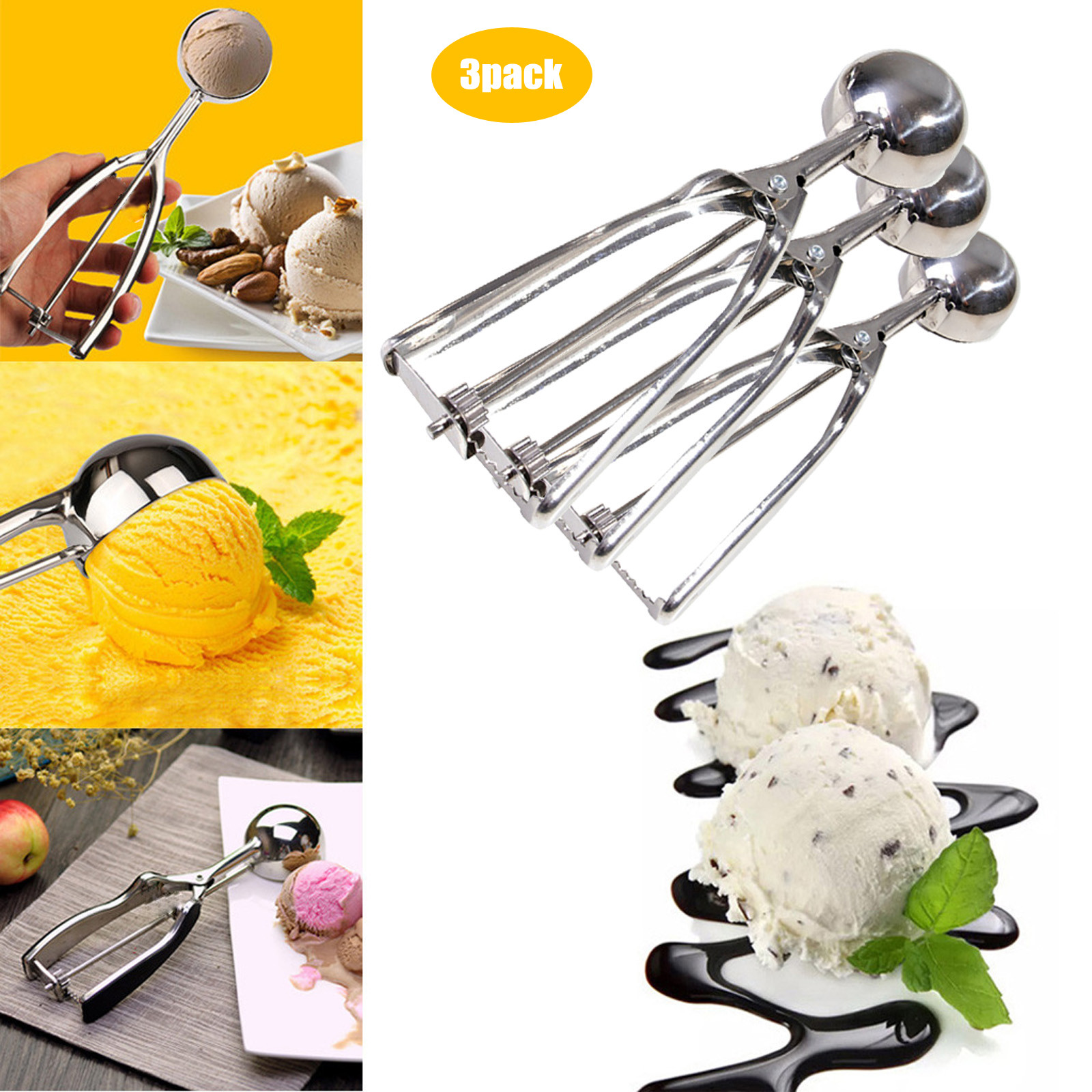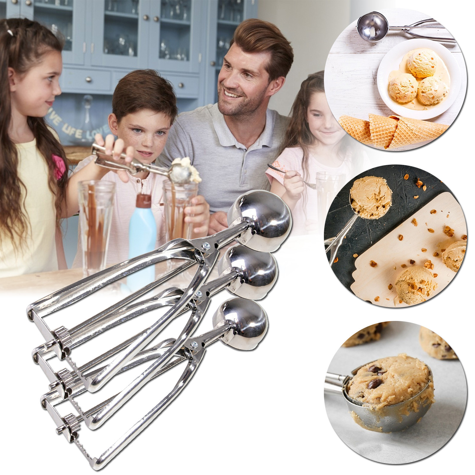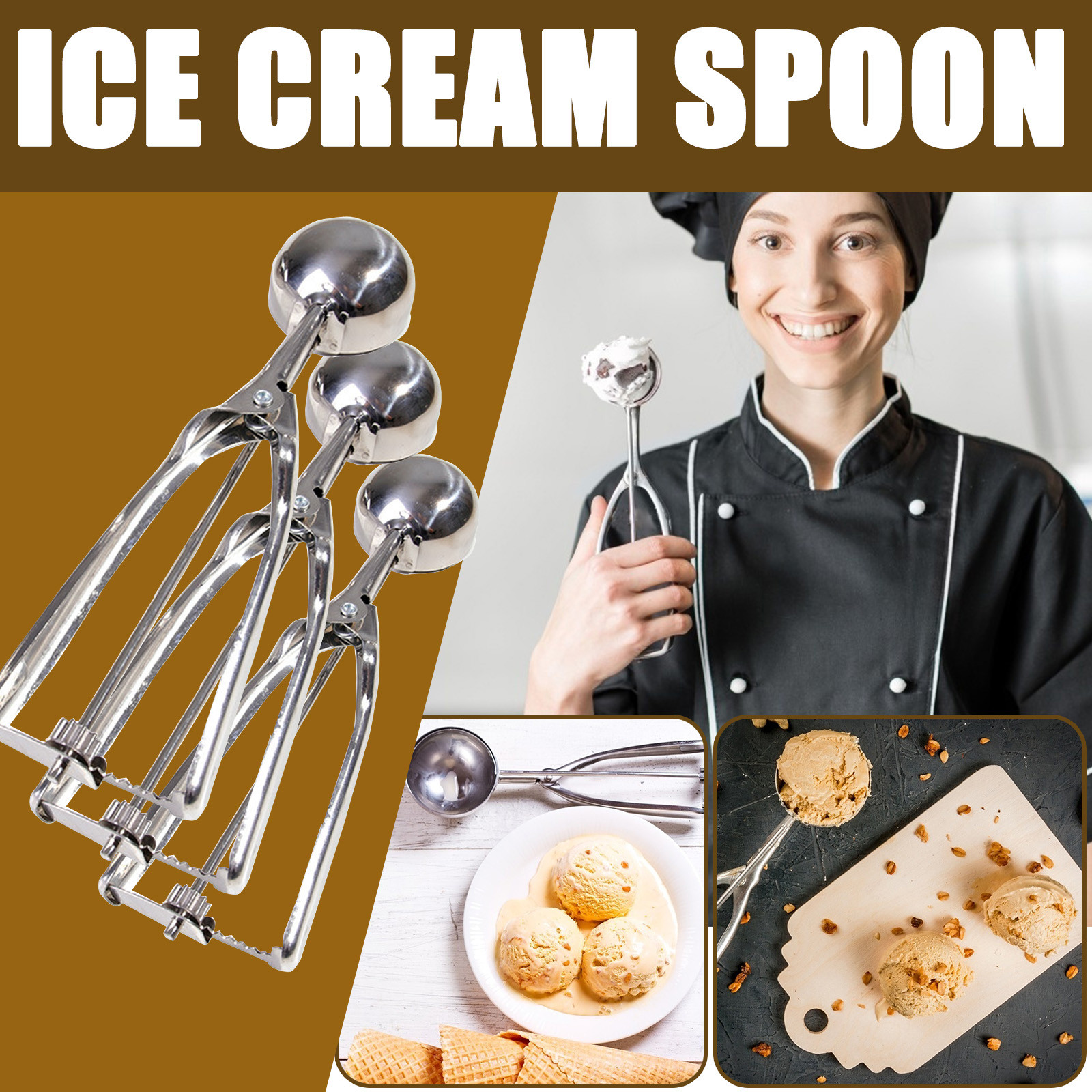 Лед Ложка для крема из нержавеющей стали с пружинной ручкой для печенья