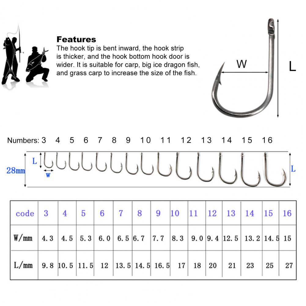 С характеристиками внутреннего изогнутого крючка, Толстого крючка, более широкого дна крючка, рыболовный крючок подходит для ловли карпа, большого Ледяного Дракона, травяной Карп и другие рыбы, которые не легко ускользнуть.