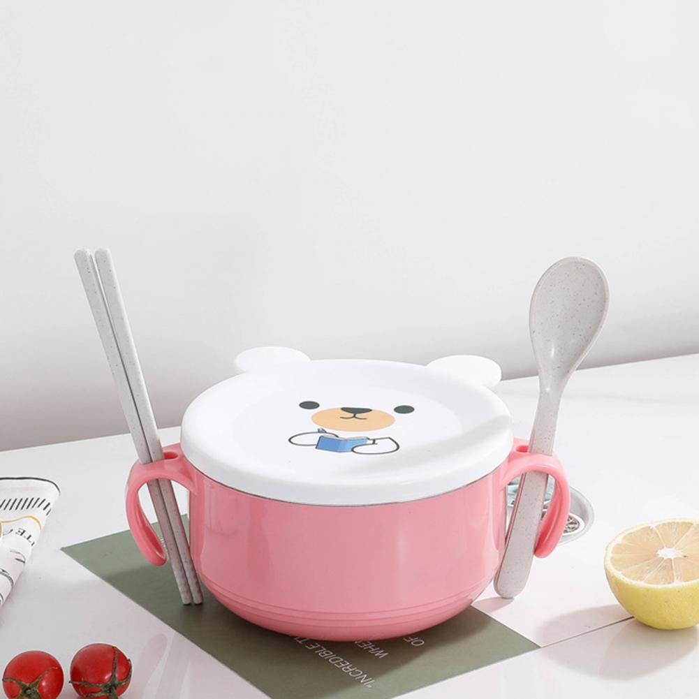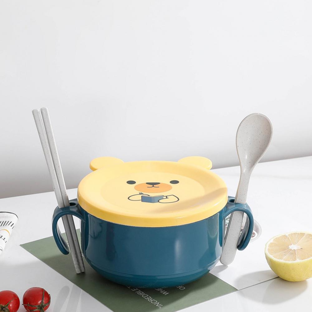 Миска для лапши поставляется с пыленепроницаемой крышкой с мультяшным рисунком, которая может предотвратить утечку супа и сохранить свежесть пищи.