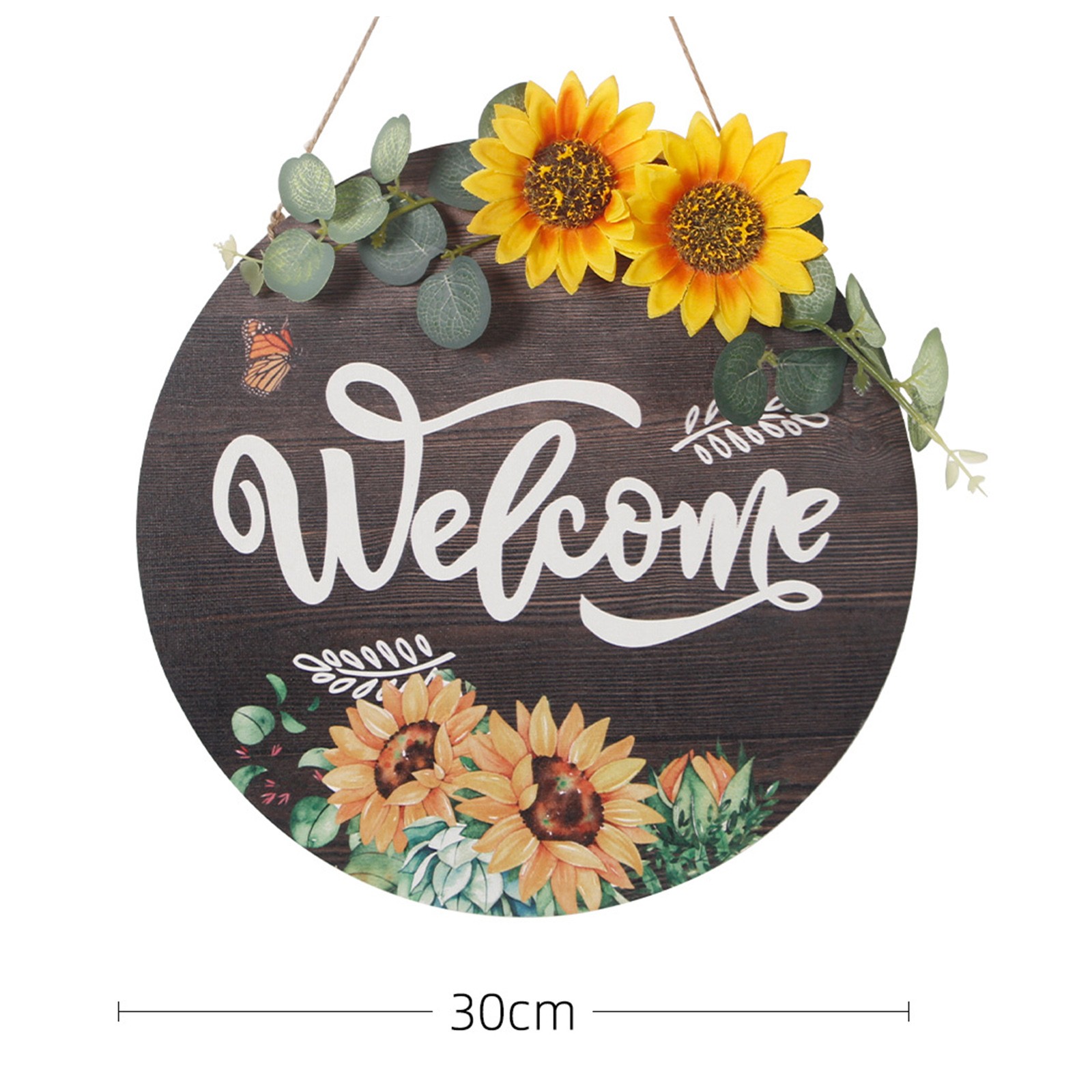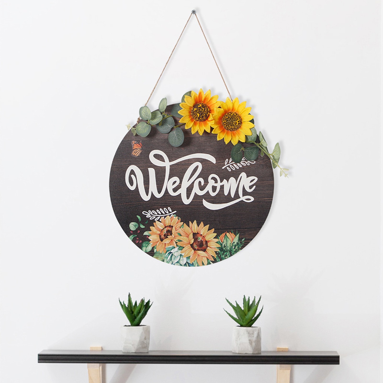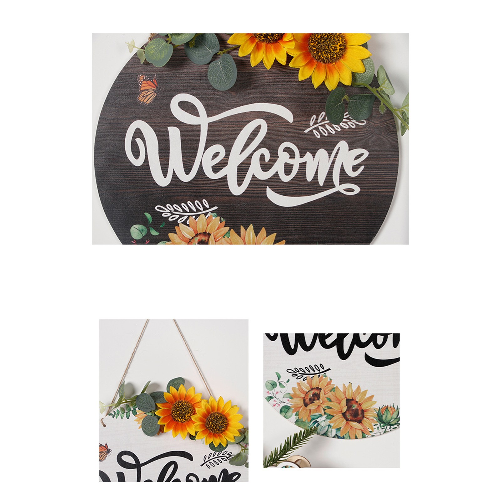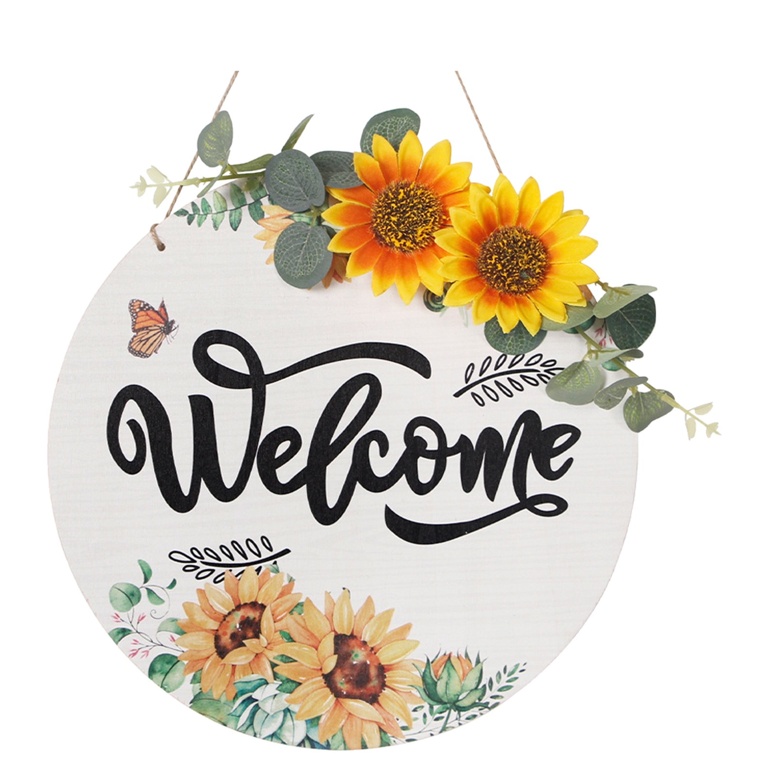 Подсолнух деревянный круглый Добро пожаловать список украшения двери Добро пожаловать круглый год знак