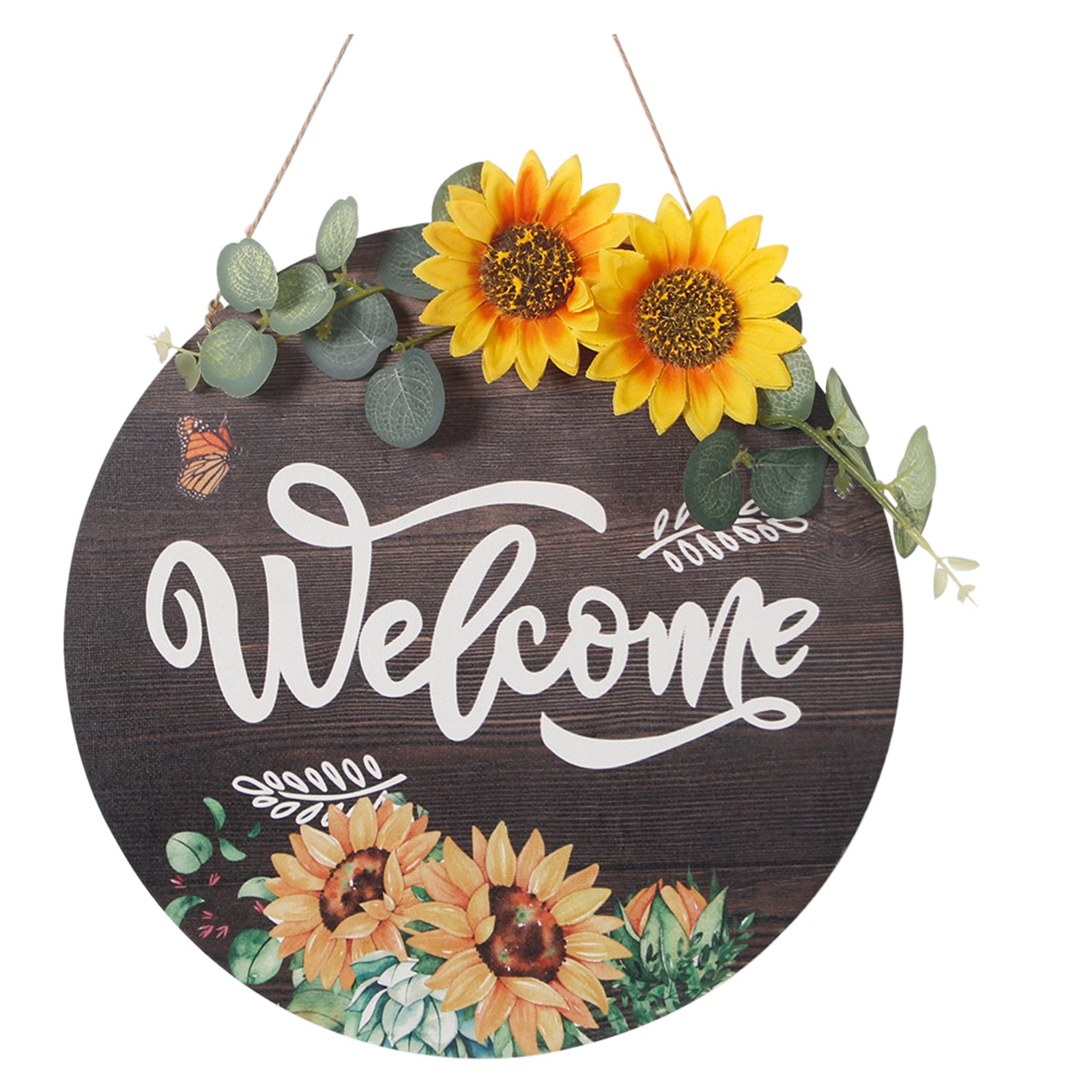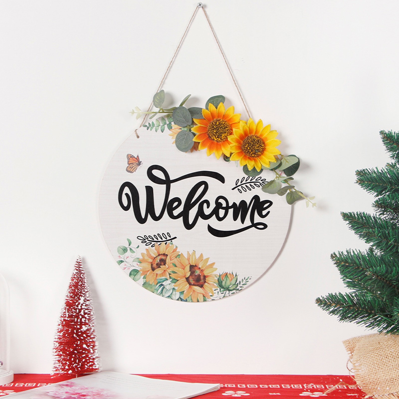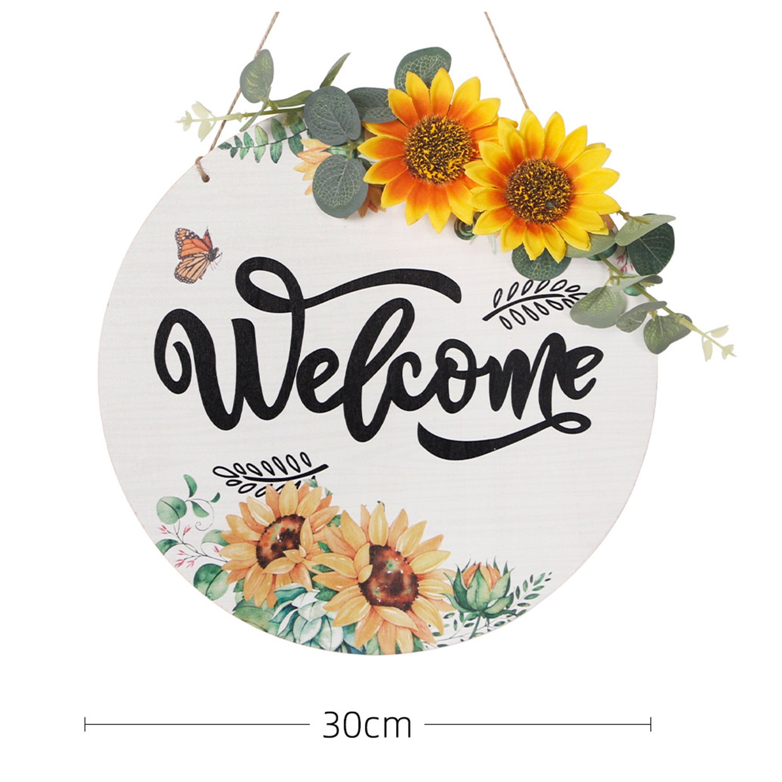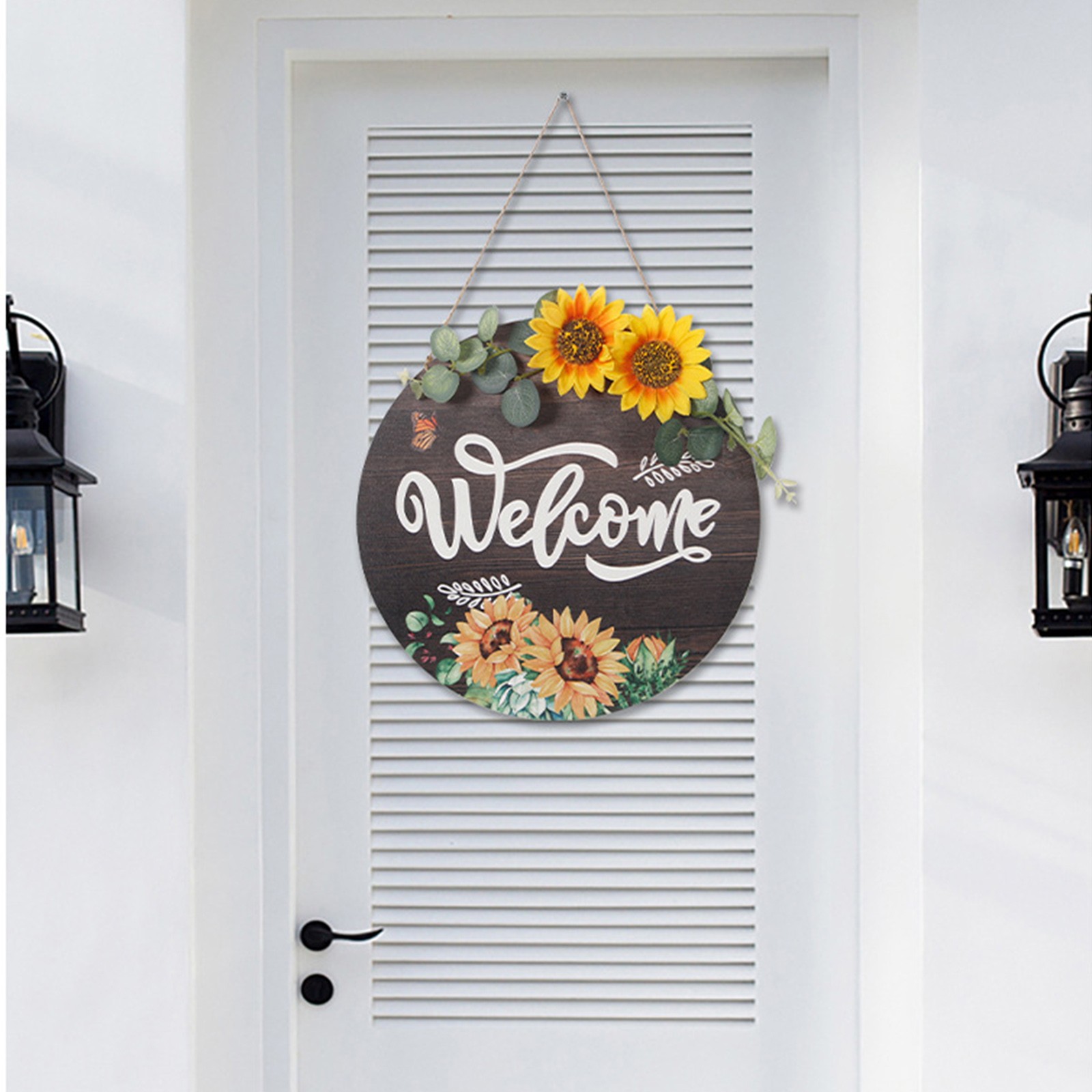 Подсолнух деревянный круглый Добро пожаловать список украшения двери Добро пожаловать круглый год знак
