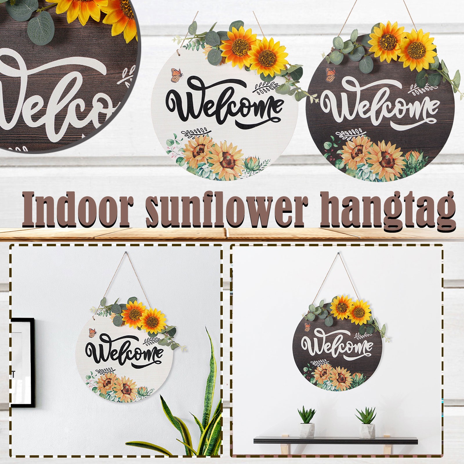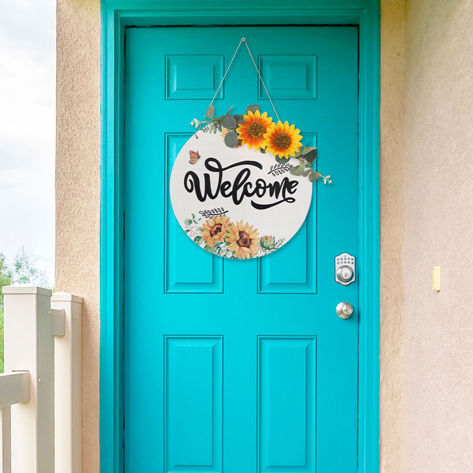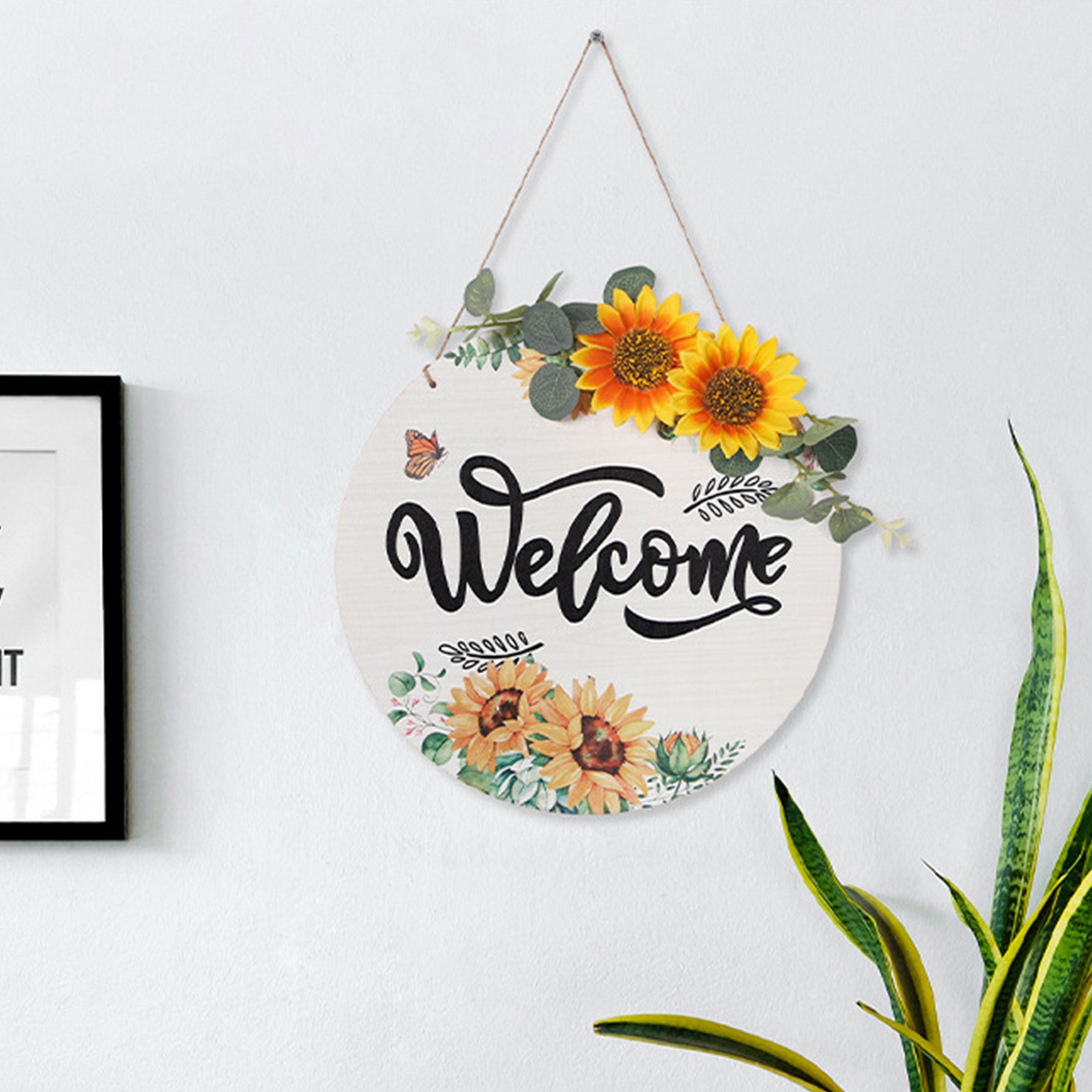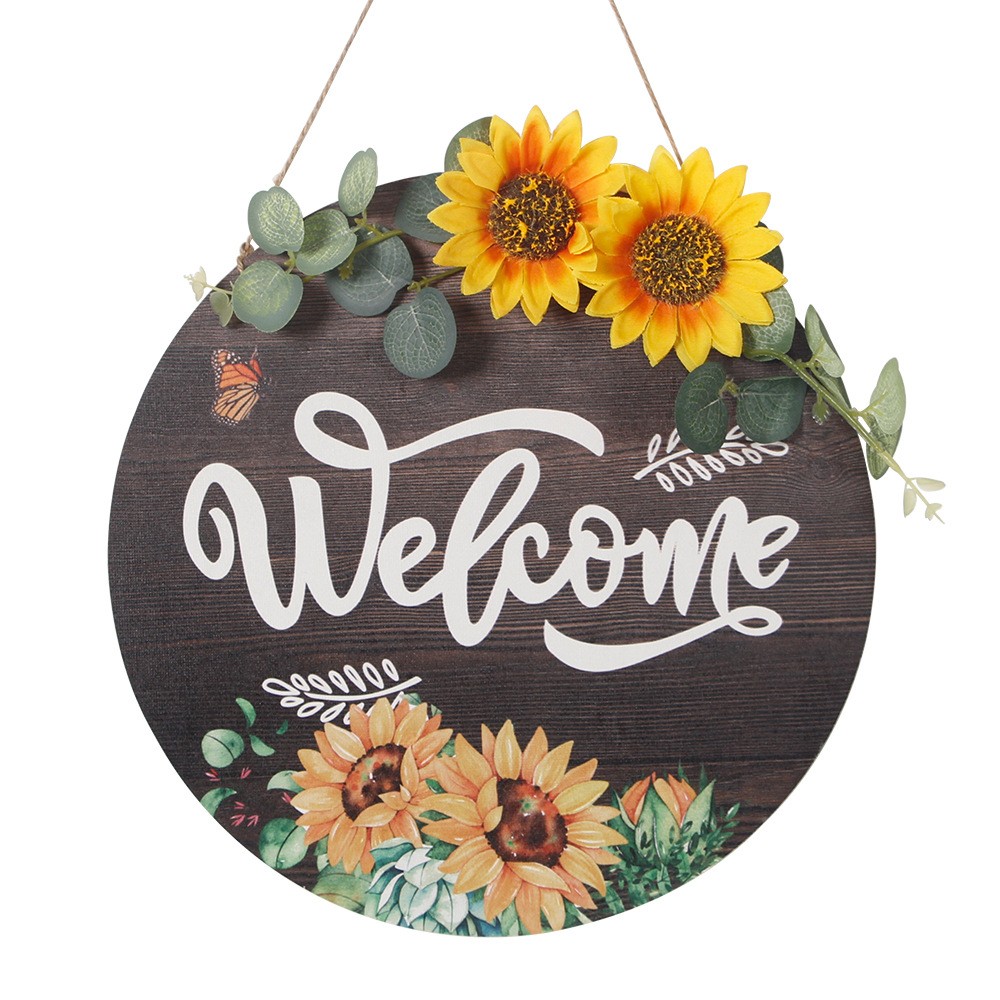 Подсолнух деревянный круглый Добро пожаловать список украшения двери Добро пожаловать круглый год знак