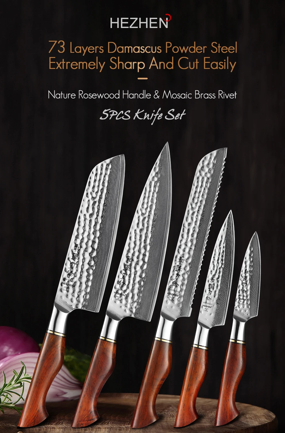 HEZHEN Мастер серии 73-Слои косметическая пудра Дамаск Сталь 5 шт набор ножей