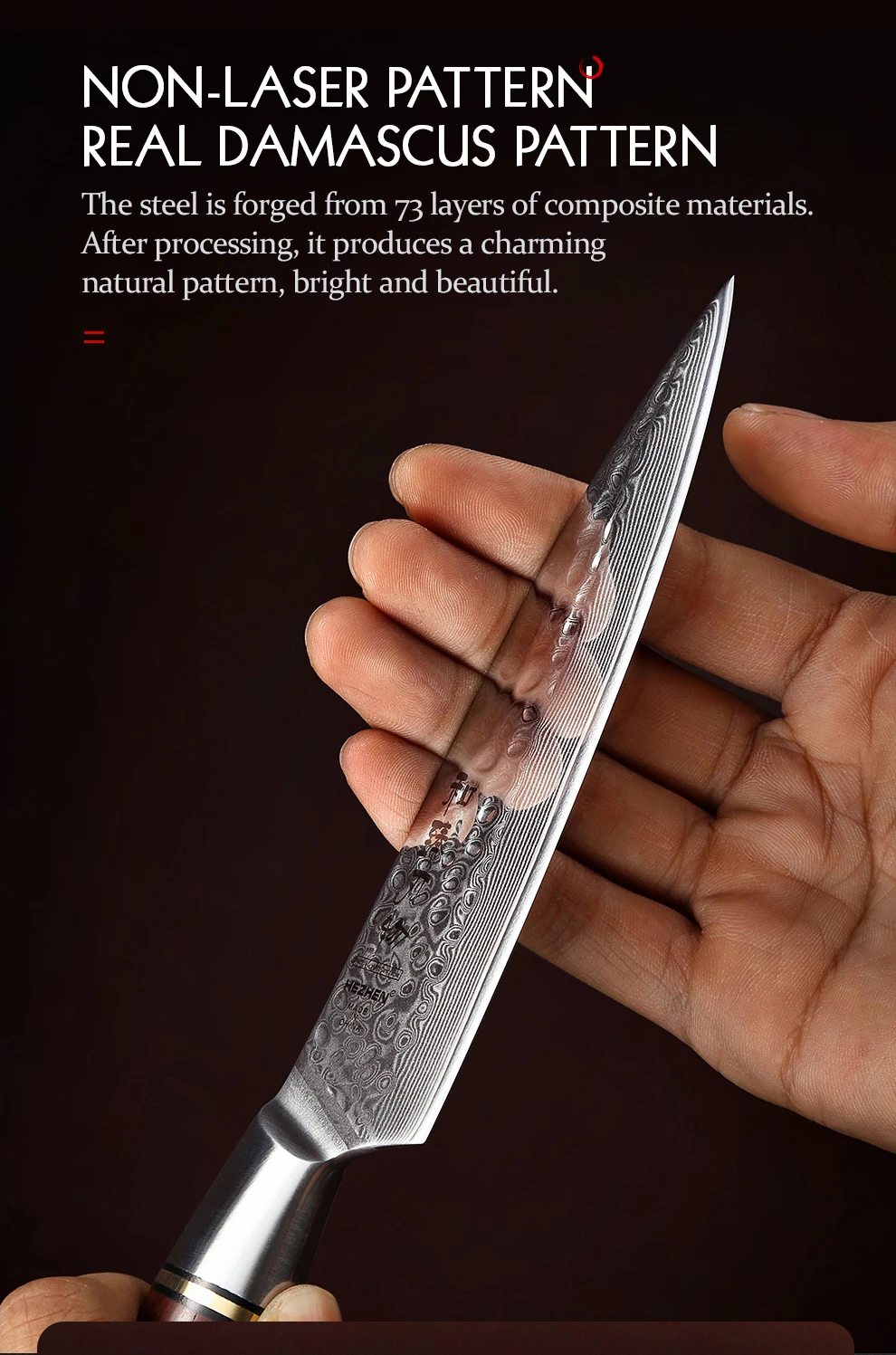 Материал лезвия:73 слоя порошка Дамасская супер сталь