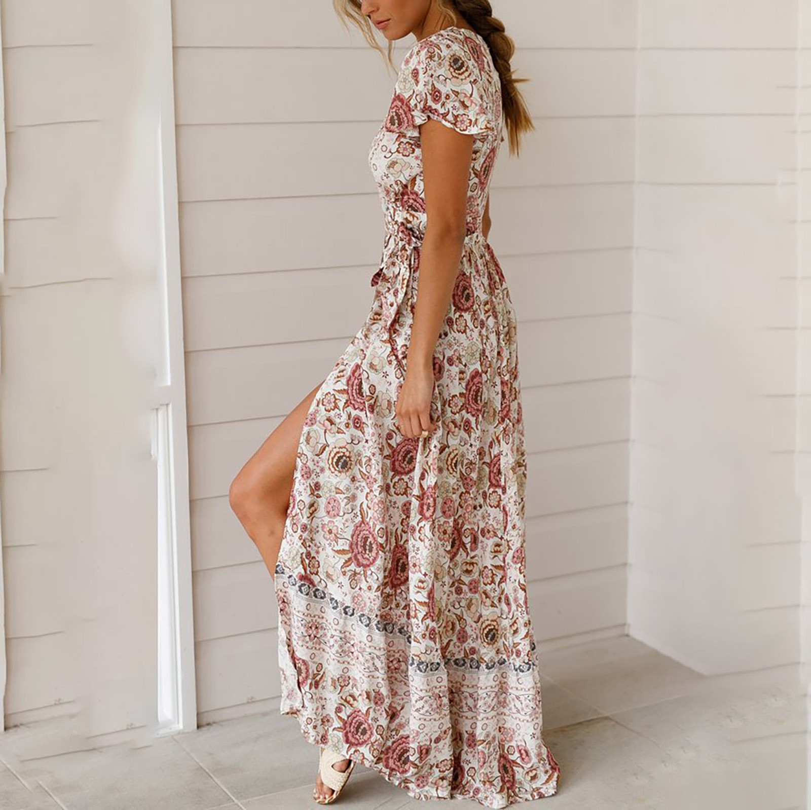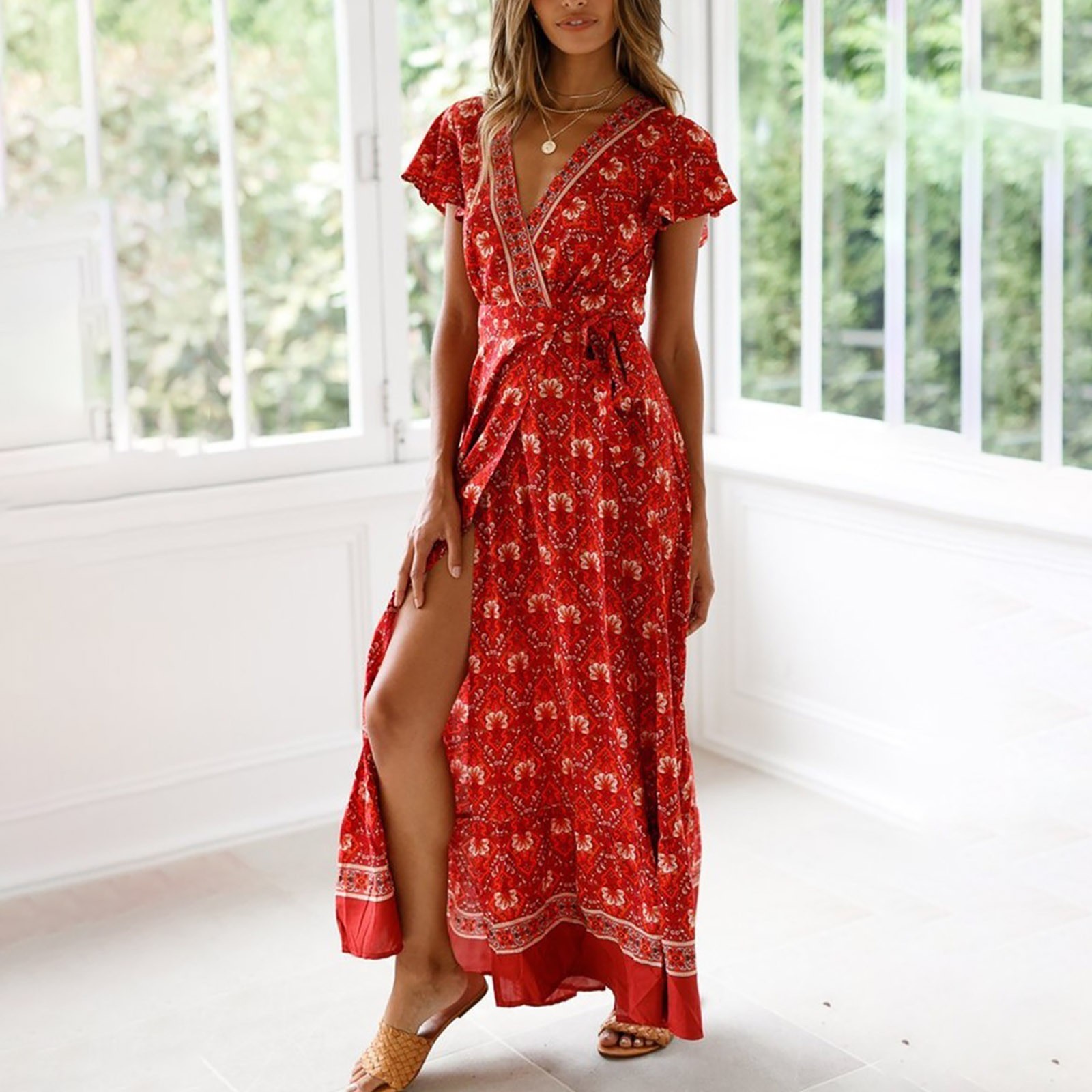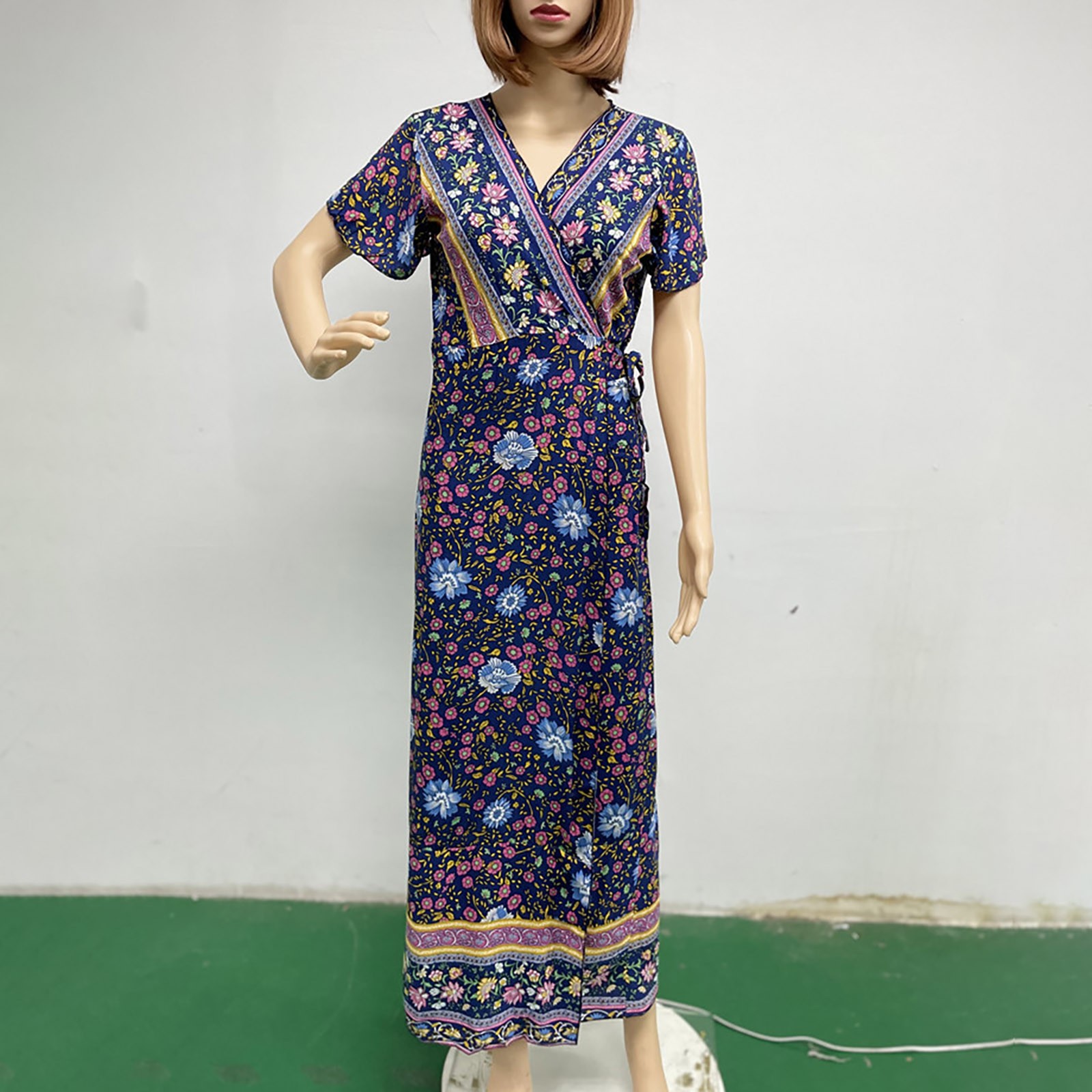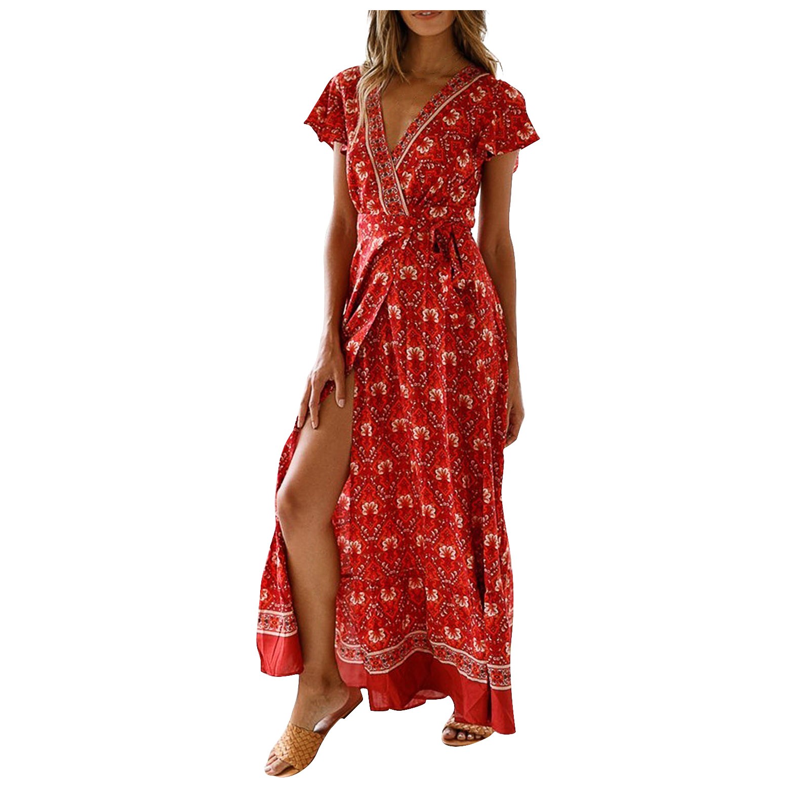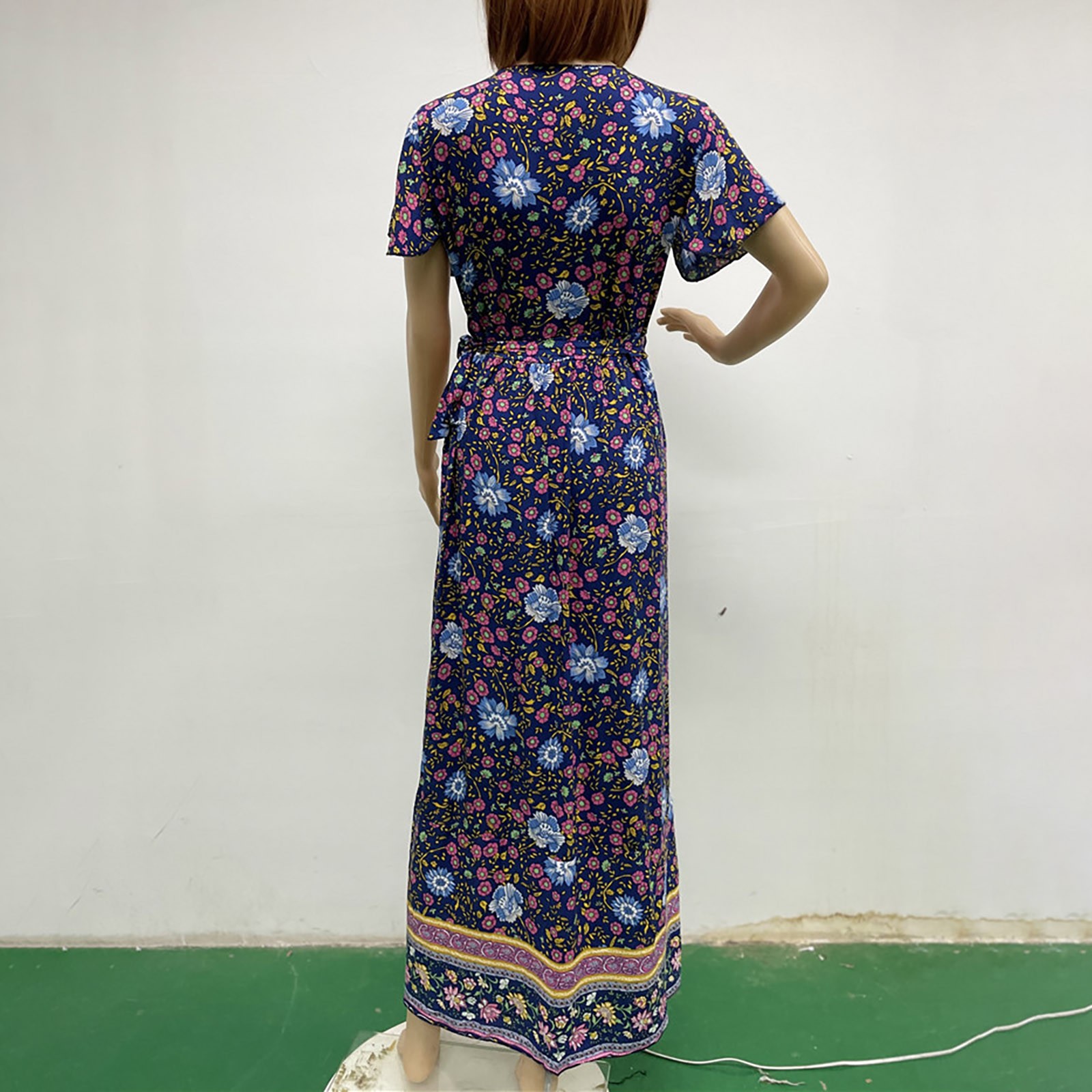 Женское сексуальное длинное платье с v-образным вырезом и поясом