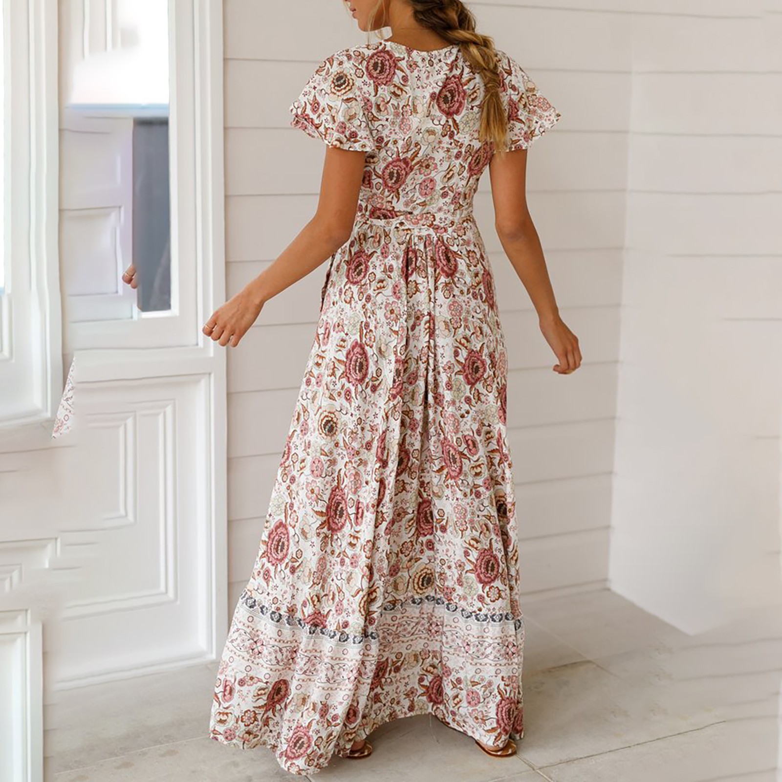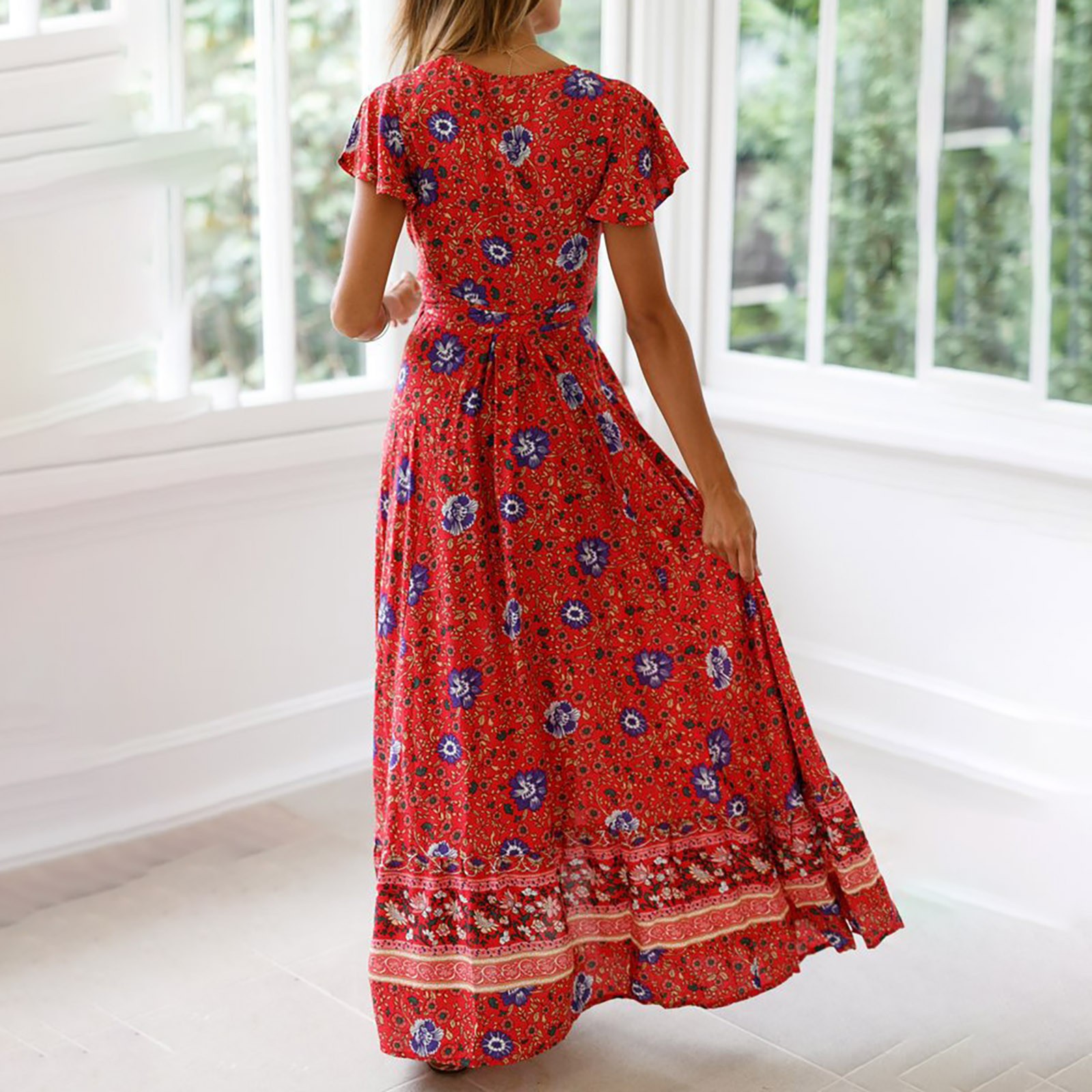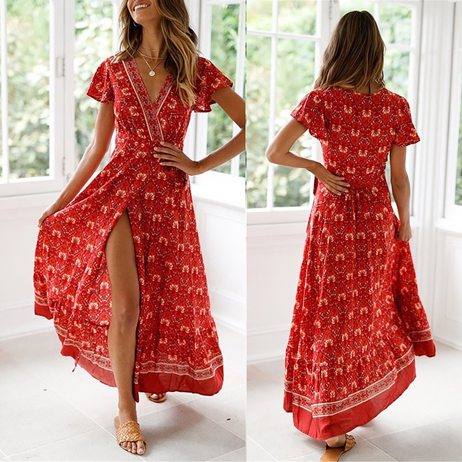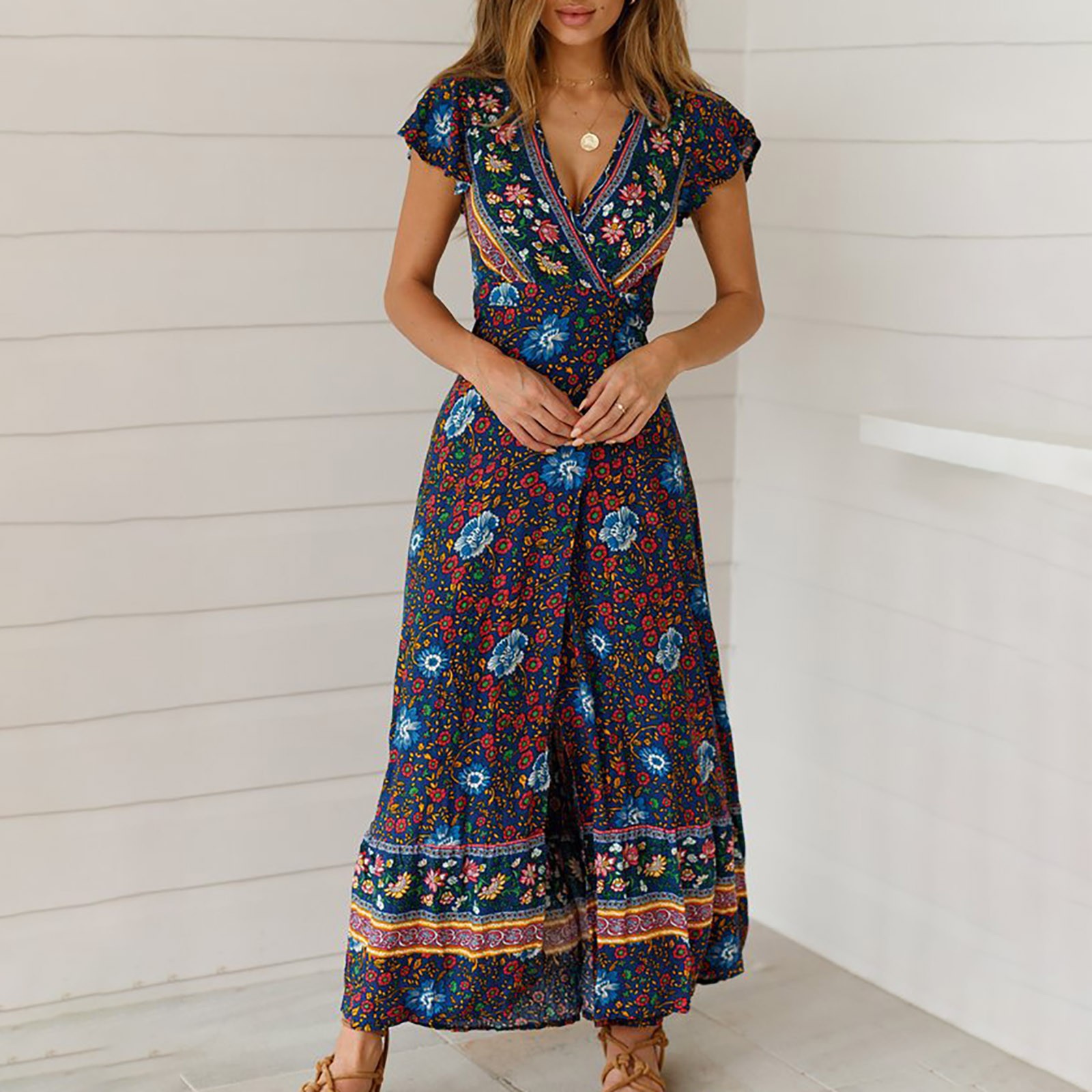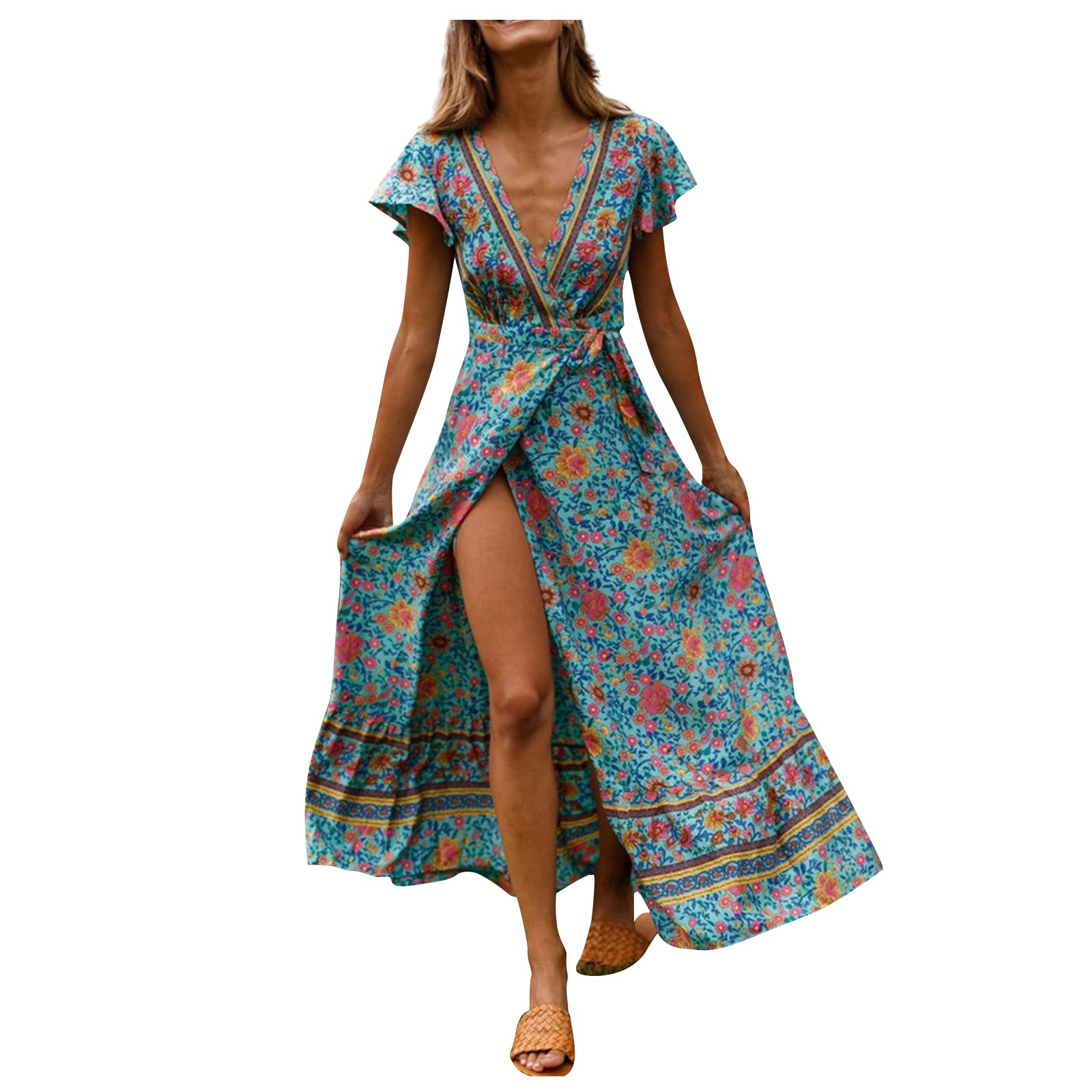 Женское сексуальное длинное платье с v-образным вырезом и поясом