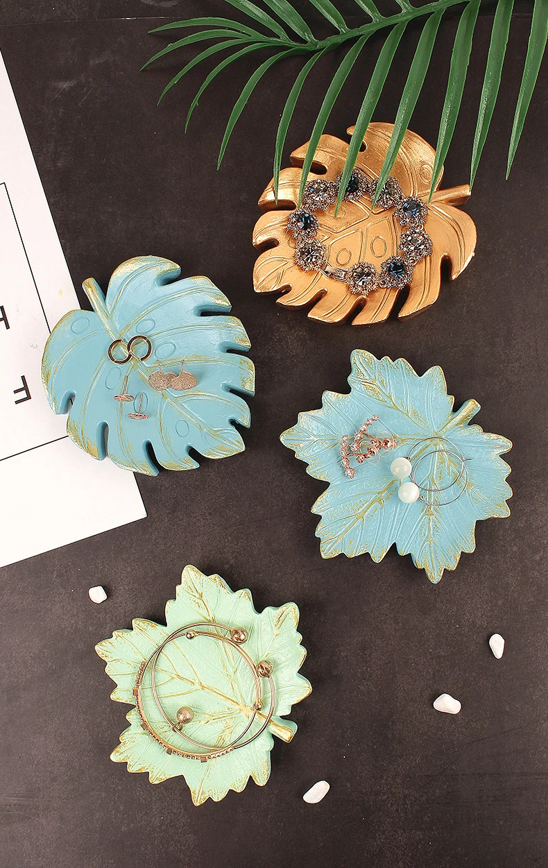 100% новый товар высокого качества. Изготовлен из смолы, с золотым пигментом на поверхности. Наименование: лоток для хранения ювелирных изделий Материал: смола Цвет: золотой, синий, зеленый