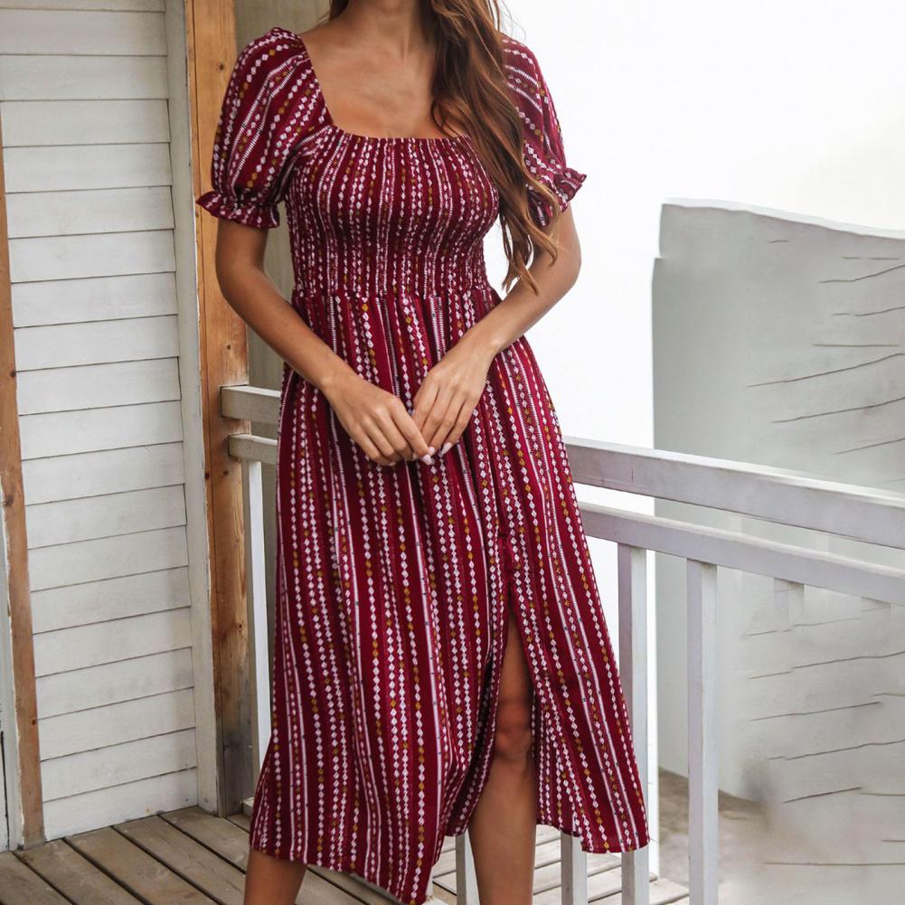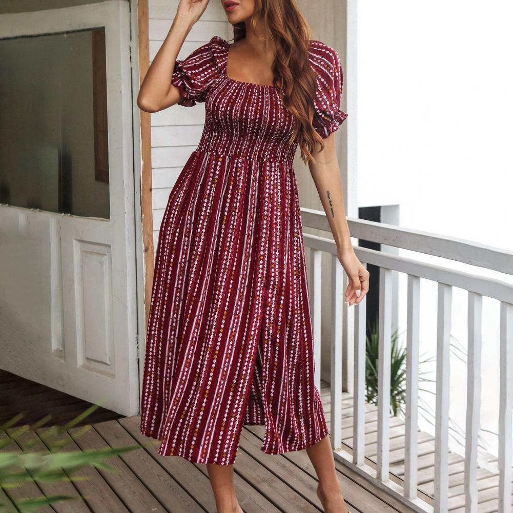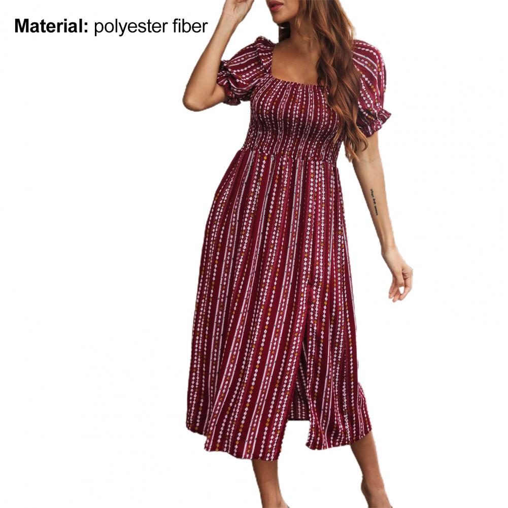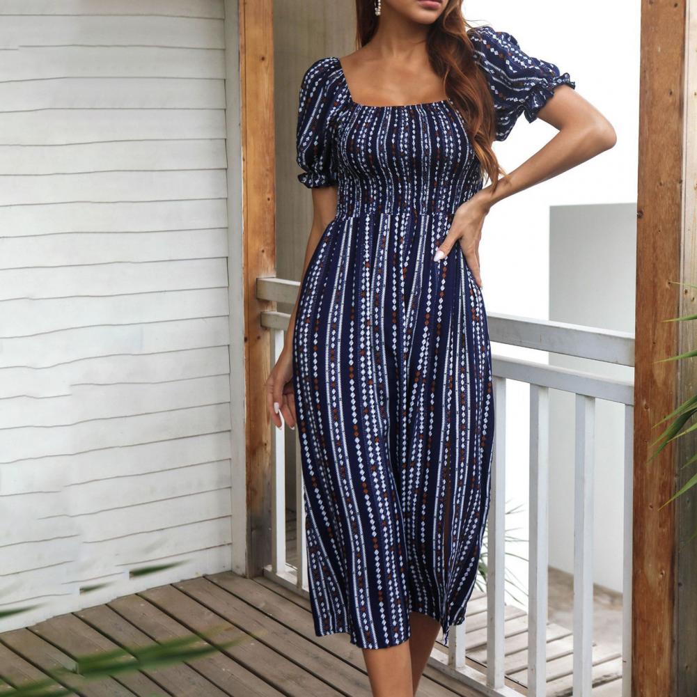 Женское платье для отдыха с пышными рукавами, эластичный Топ, винтажное платье с этническим принтом, повседневная одежда