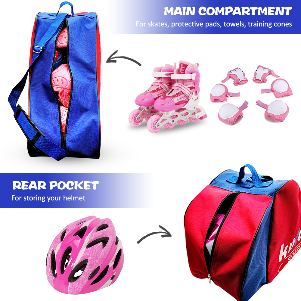 Основное отделение для хранения ваших коньков, защитных подушечек, тренировочных конусов и других аксессуаров.
