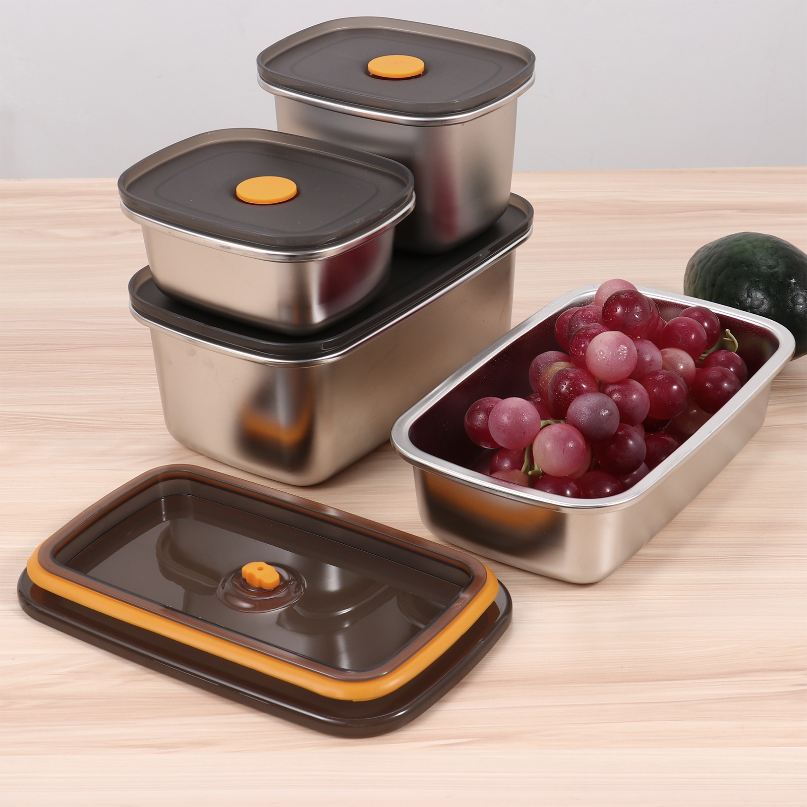 Пищевой 304 пищевой контейнер для завтрака из нержавеющей стали с герметичной крышкой PP, герметичная легкая коробка Bento для школы и офиса