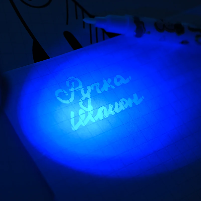 Use the pen invisible can be as a classic ball and for writing cribs, notes and secret messages. UV flashlight works from 3 Replaceable AG3 batteries (included).