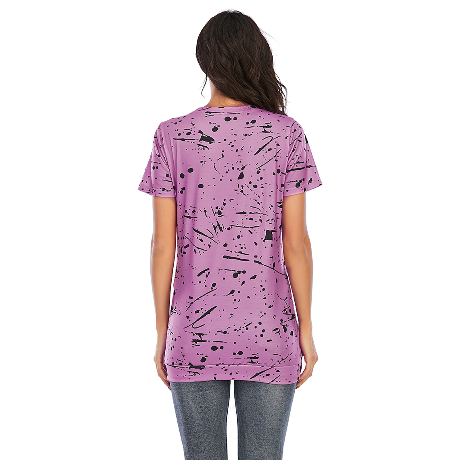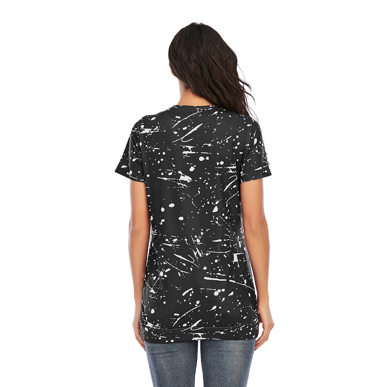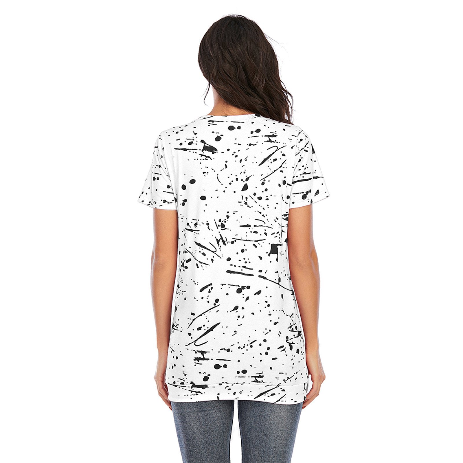 1. Особенности: повседневные топы, принт, Повседневная футболка, v-образный вырез, модная футболка, короткий рукав, футболка-пуловер, повседневные топы, повседневная одежда, стильный и модный дизайн, Летняя Повседневная блузка.