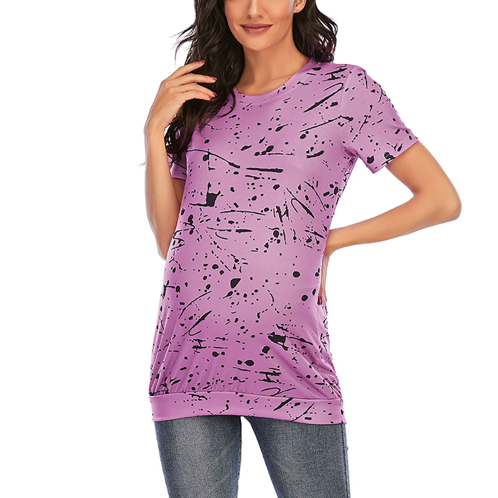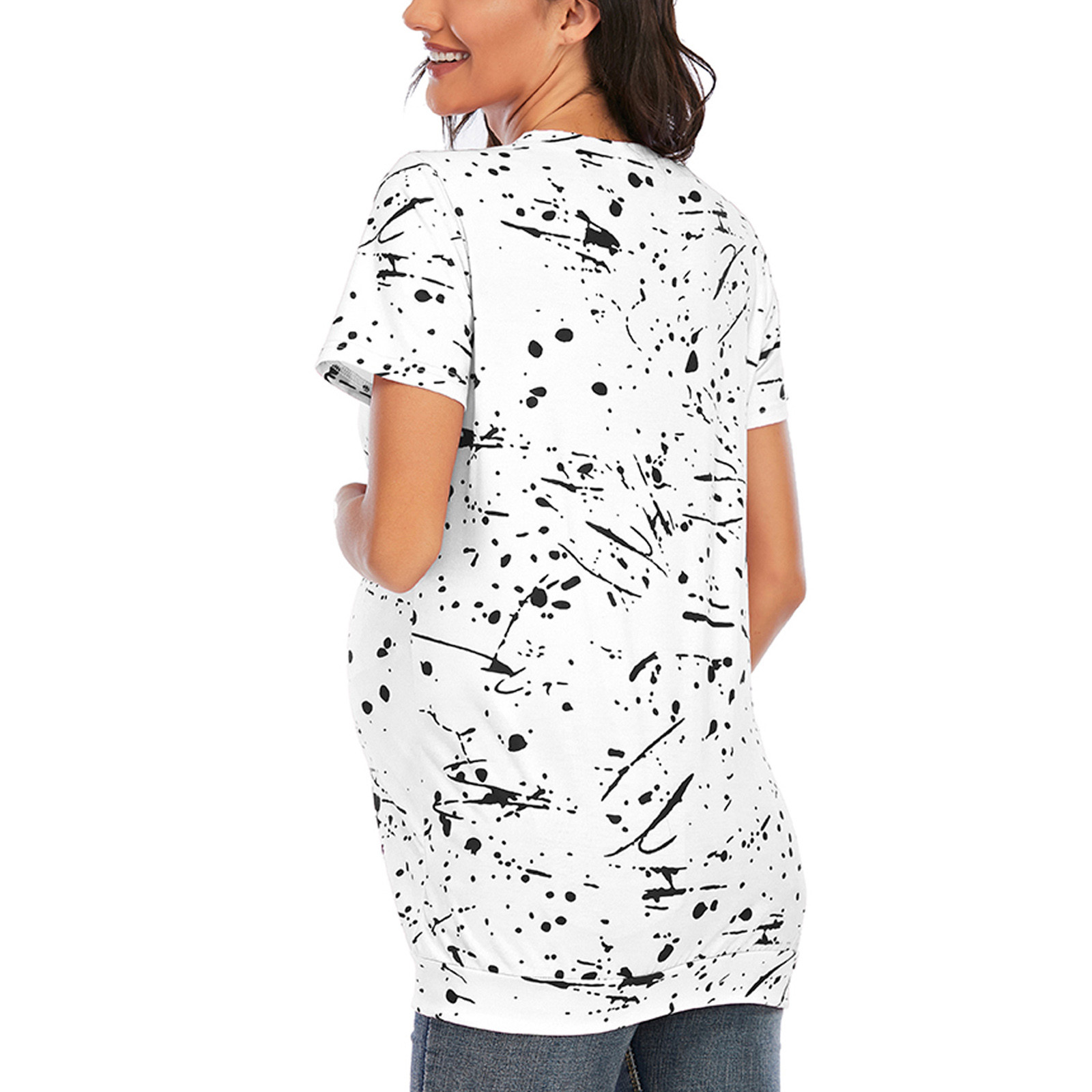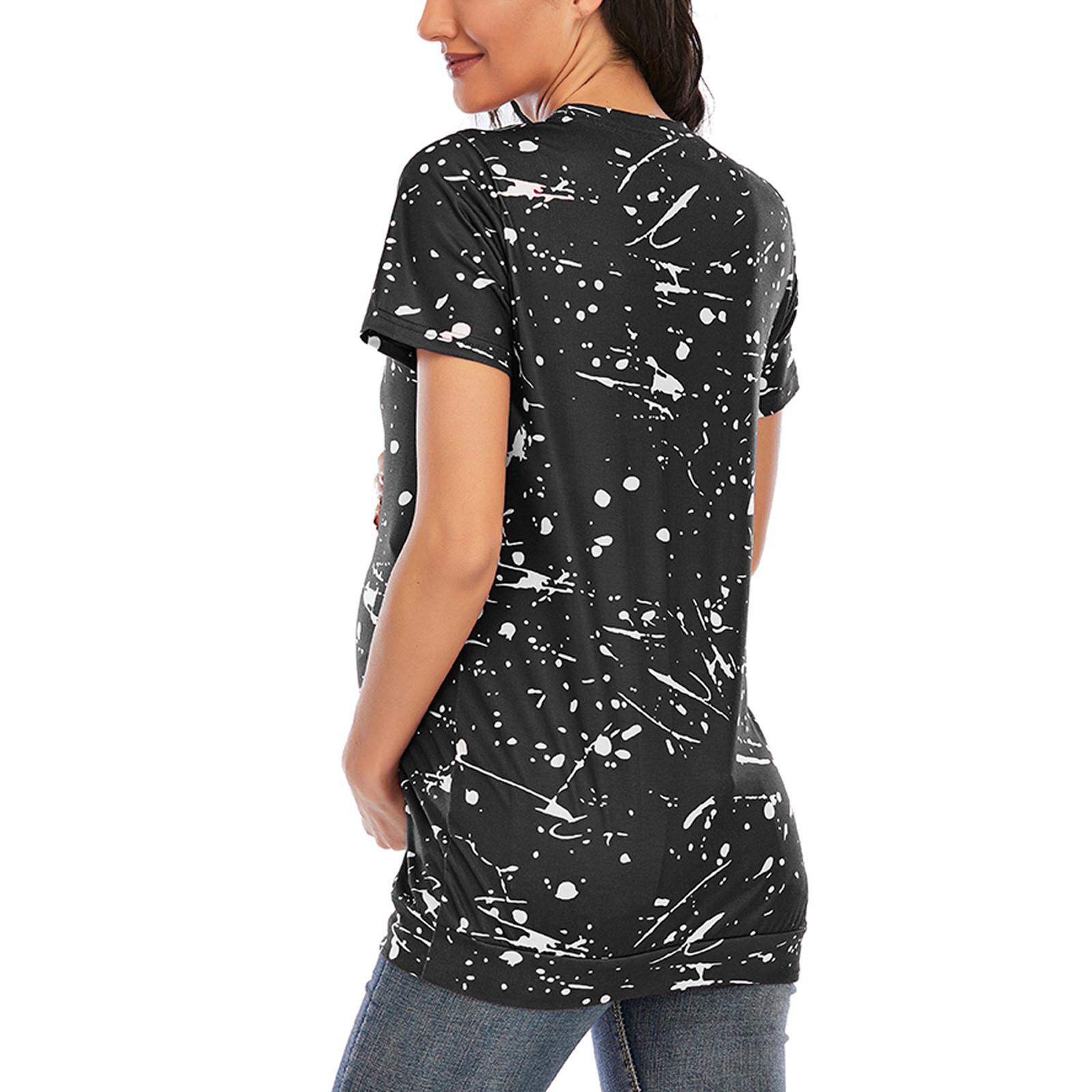 1. Особенности: повседневные топы, принт, Повседневная футболка, v-образный вырез, модная футболка, короткий рукав, футболка-пуловер, повседневные топы, повседневная одежда, стильный и модный дизайн, Летняя Повседневная блузка.