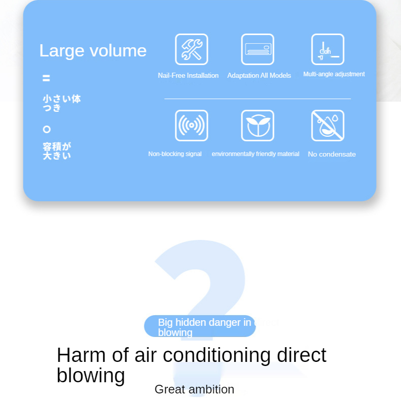 5. Подходит для всех сезонов. Дужки нашего ветрового стекла можно свободно регулировать, чтобы изменить направление ветра кондиционера. Тепло зимой и прохладно летом, наслаждайтесь прохладным и теплым воздухом соответственно.