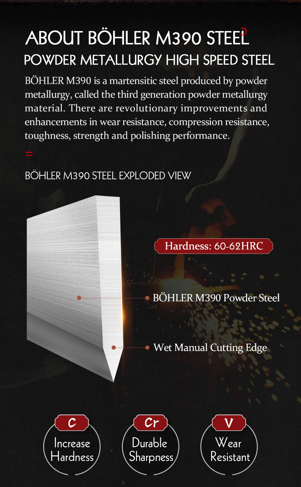 Материал лезвия:БёлерM390 Порошковая сталь