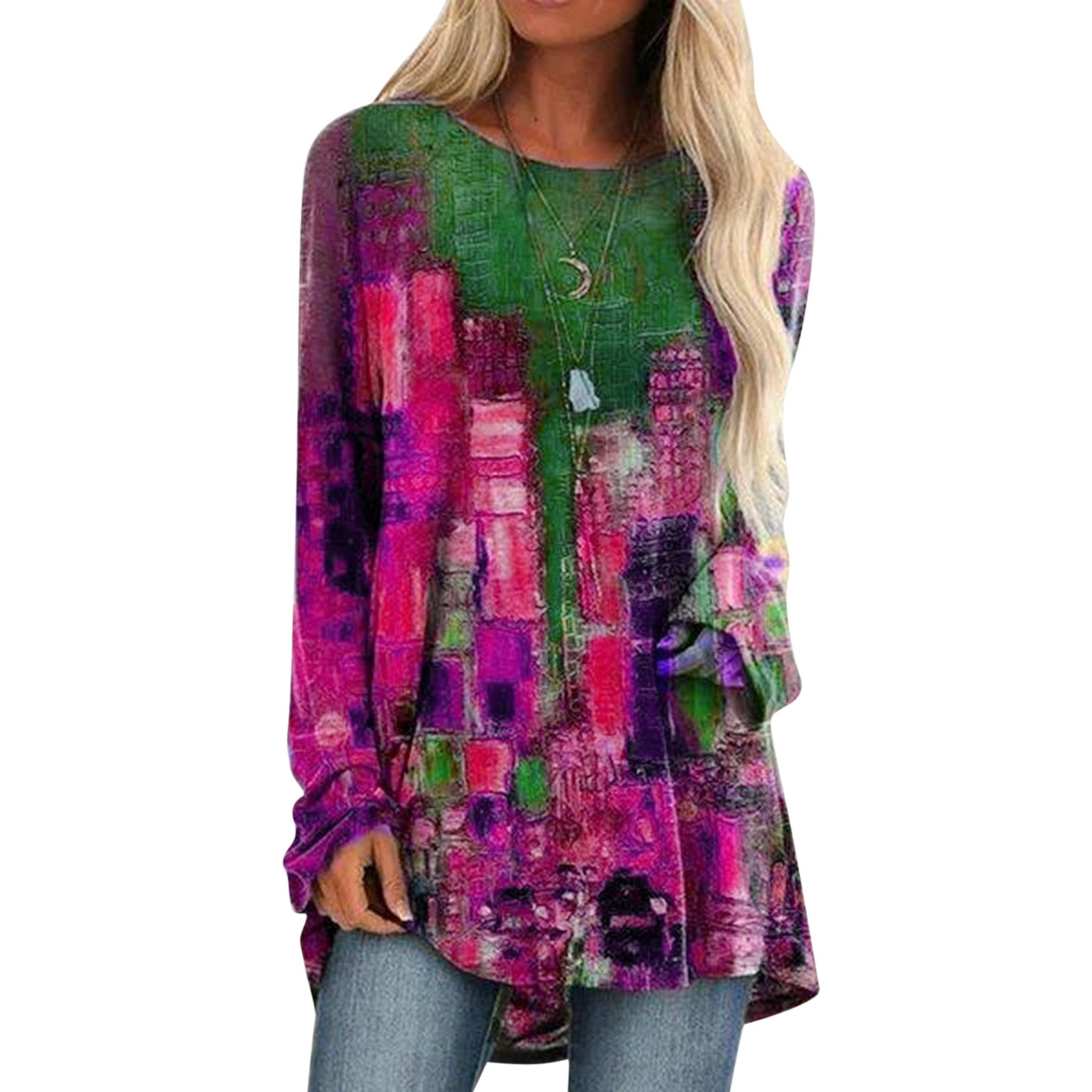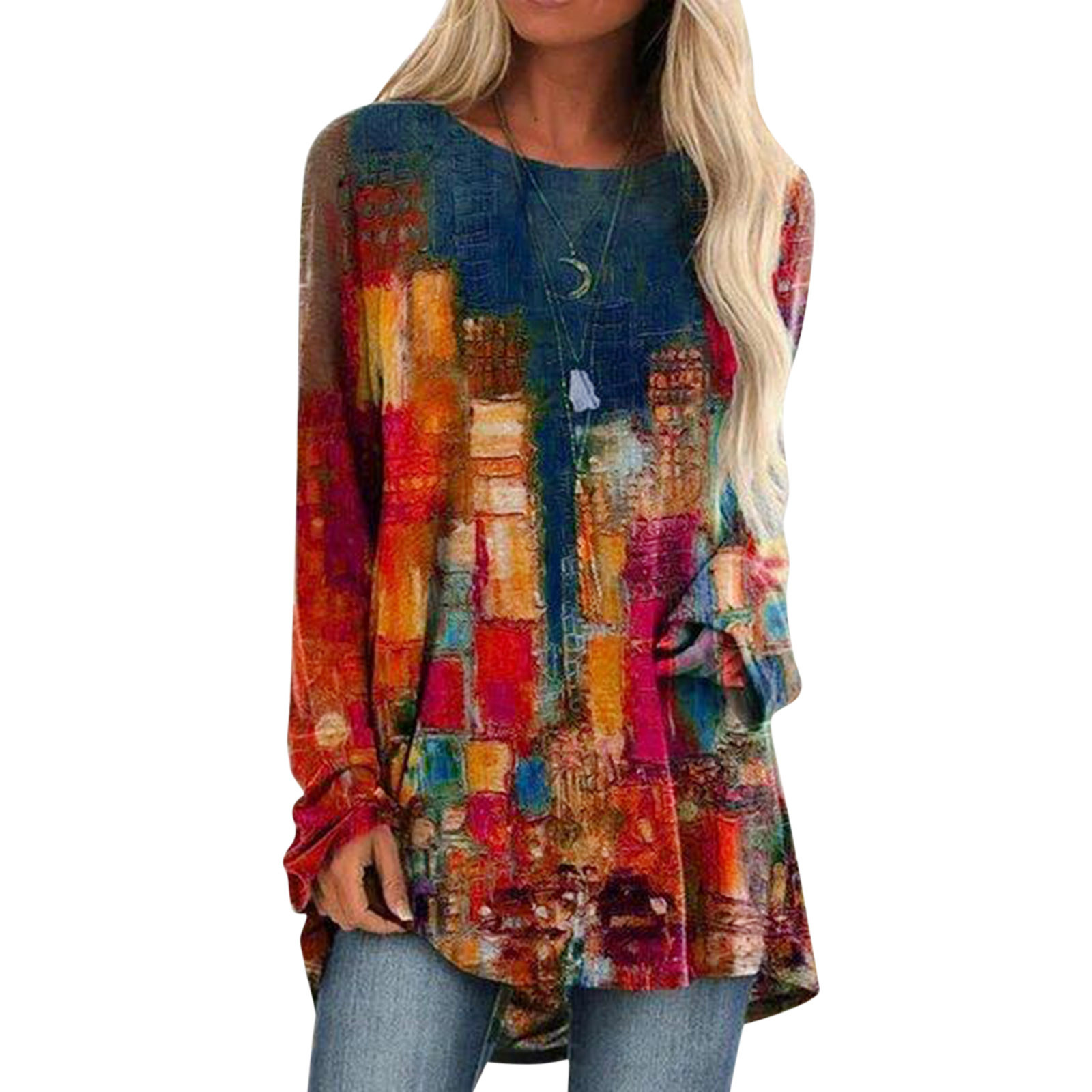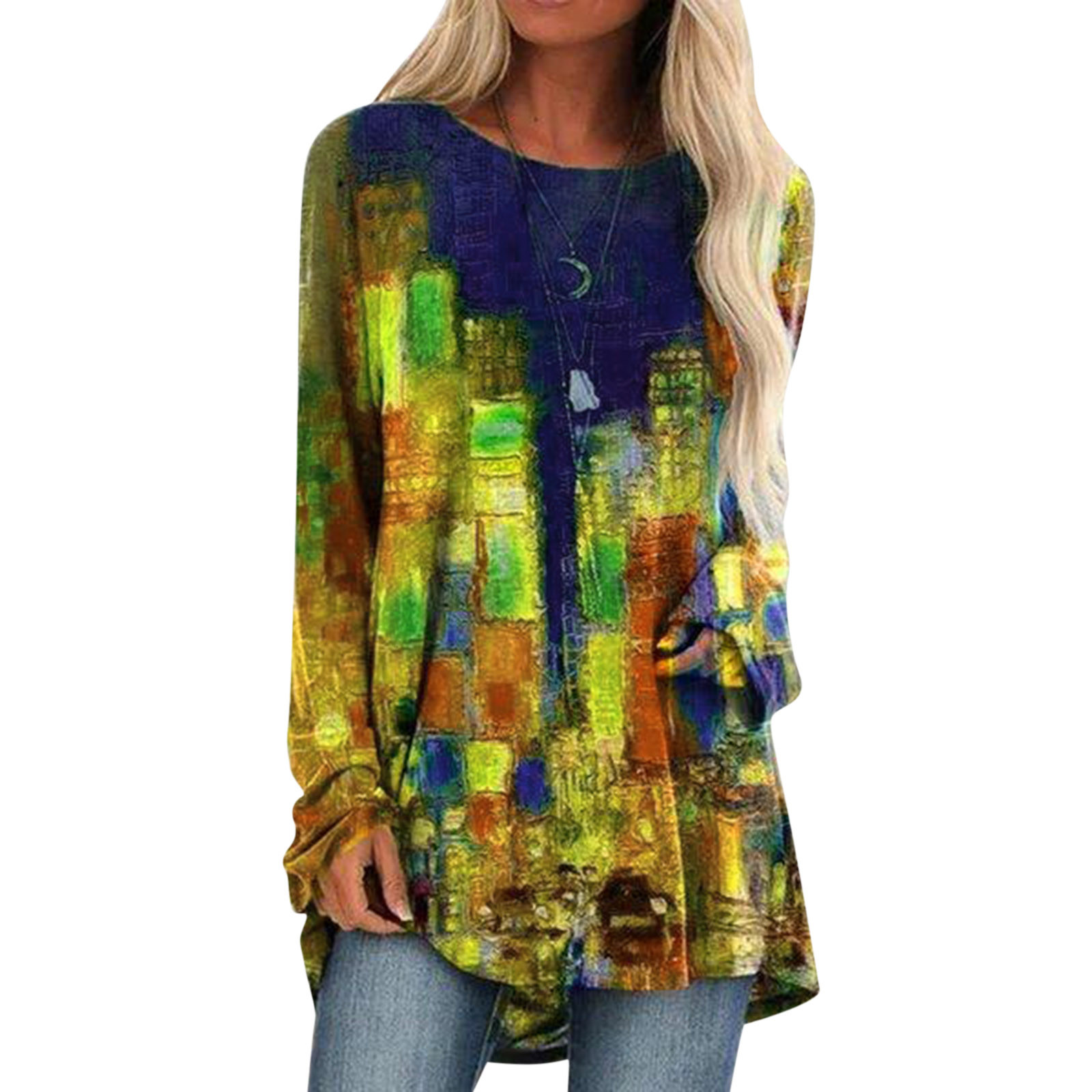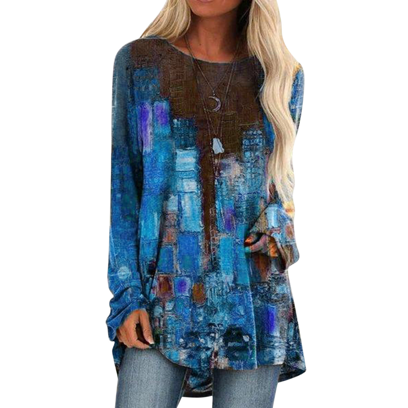 Женская футболка с длинным рукавом и круглым вырезом размера плюс