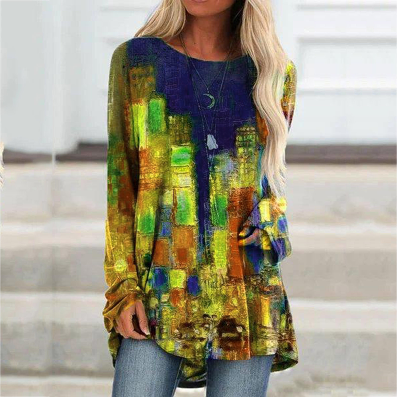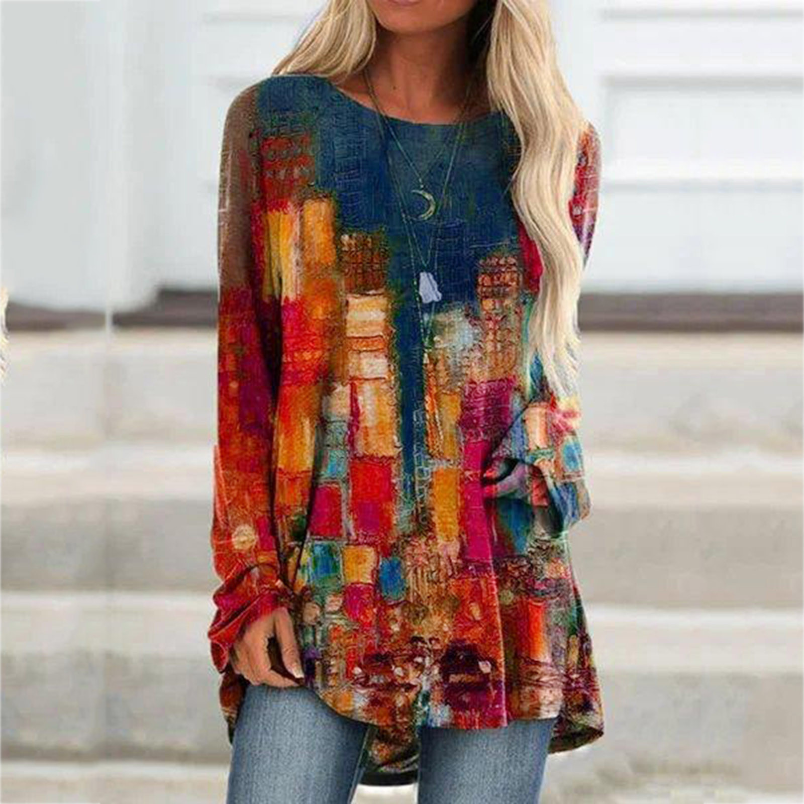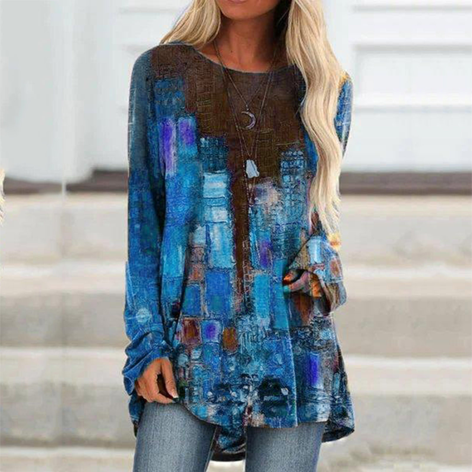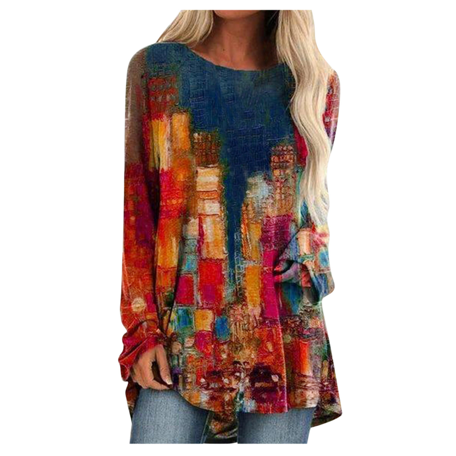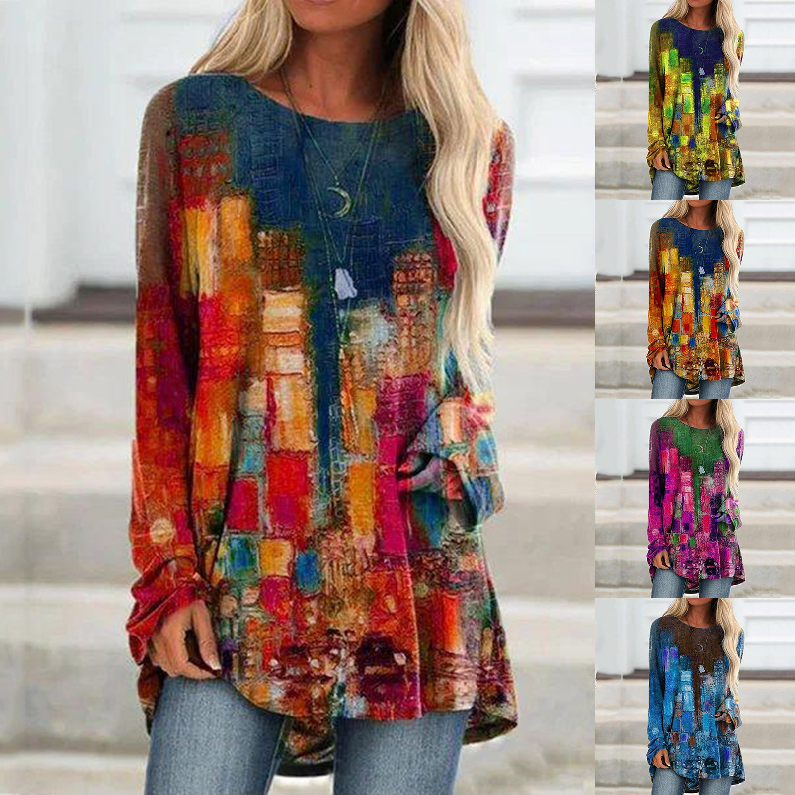 Женская футболка с длинным рукавом и круглым вырезом размера плюс