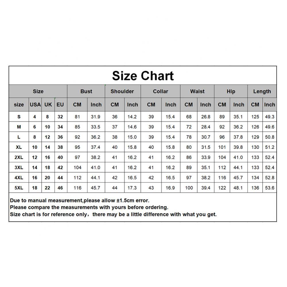 [Наш Размер 5XL] Ширина плеч: 44 см/17,32 дюйма, обхват груди: 116 см/45,67 дюйма, обхват талии: 100 см/39,37 дюйма, обхват бедер: 122 см/48,03 дюйма, длина: 136 см/53,54 "(прибл.)