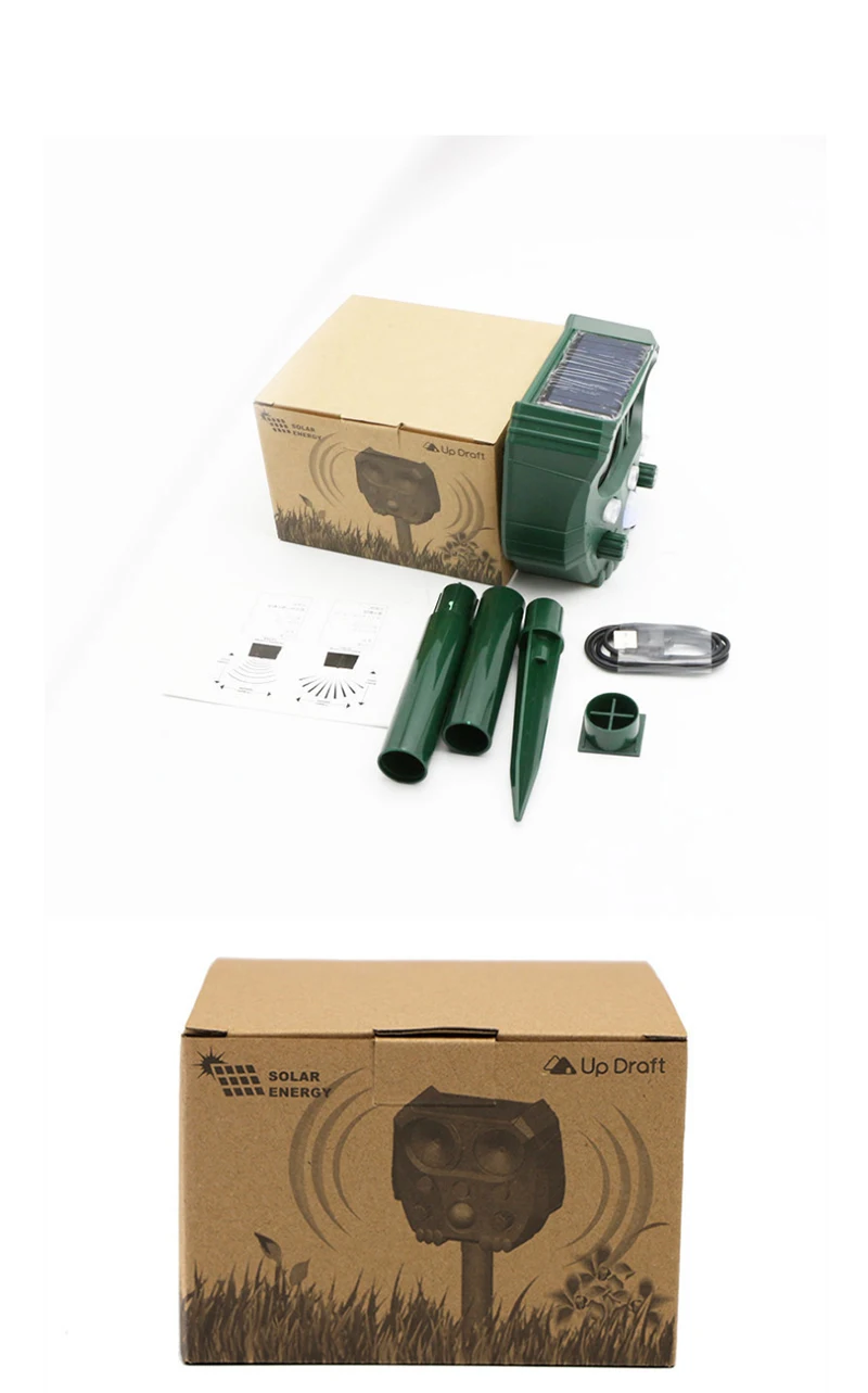 1. Он поставляется с 4 батареями, которые могут быть заряжены солнечной энергией и USB. При воздействии дождя, снега и льда его Водонепроницаемая функция предотвращает попадание влаги, тем самым обеспечивая защиту вашего сада и фермы круглый год.2. Датчик движения PIR может чувствительно обнаруживать движущиеся объекты, и в то же время запускает ультразвуковые волны и мигающие огни, чтобы предотвратить вторжение плохих людей и опасных животных, тем самым защищая вашу личную безопасность и безопасность собственности, не наносит им вреда.3. Нет грязных химических веществ и пестицидов, нет ловушек, нет мертвых животных, и это Экологически безопасно.4. Протолкните его в землю или Повесьте на стену. Очень подходит для двора, террасы, подъездной дорожки, гаража, чердака, крыльца, лодки, сада, фермы, пруда и т. д. Даже если его легко носить с собой, он может быть доставлен в ваш кемпинг, вдали от бродячих собак, кошек и вредителей.Тип борьбы с вредителями: средство от насекомыхНапример, избавьтесь от оленей, птиц (голубей, дятел, чаек и т. д.), кошек, собак, медведей, белок, кроликов, скунков, летучих мышей, Лис, енотов, мышей и т. Д.Положение «частота» выглядит следующим образом:0 передач: выключено1st передач: 13,5 кГц-19,5 кГц, в основном для мыши, собаки, с рисунком «кролик», с изображением лисы, норки и других животных.2nd передач: 19,5 кГц-24,5 кГц, в основном для кошек, енотов, барсук, сканкс и других животных.3rd передач: 24,5 кГц-45,5 кГц, в основном для летучих мышей, птицы, мышей и других животных.4-я передача: светодиодный мигающий, может отгонять енотов, змей, кабанов, минков и других животных.5-я передача: светодиодный светильник с разрывом 5,50 кГц, полный волновой диапазон приводит животных и светильник s. Все функции работают в одно и то же время, и частотный диапазон до пятого шестерни работает в свою очередь, сопровождается сильнымПримечаниеВыключите выключатель при зарядке, чтобы вы могли зарядить быстрее.Лучше всего заряжать устройство управления животными на солнце в течение всего дня, прежде чем использовать его в первый раз.Пожалуйста, не закрывайте датчик PIR, в противном случае он не будет работать.Из-за ручного измерения возможны незначительные отклонения.Из-за различных эффектов отображения и освещения фактический цвет продукта может немного отличаться от цвета, показанного на картинке