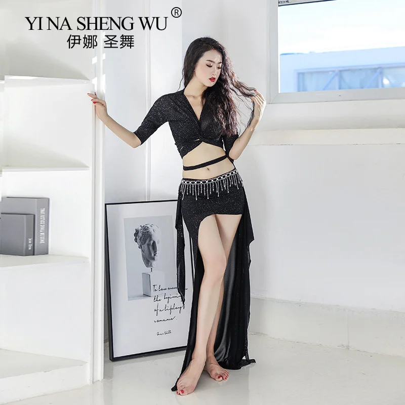 2 шт., женские удобные костюмы для танца живота, чистая пряжа, одежда для занятий восточными танцами, наряд для танцев, топ с коротким рукавом, сексуальная юбка