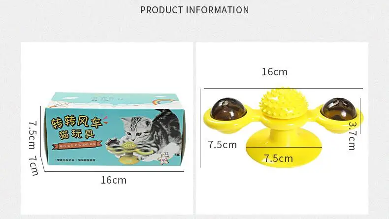 4. Несколько применений-на круглых лезвиях ветряной мельницы есть два прозрачных ящика, которые могут разместить светильник, шарики, колокольчики и мятные шарики для привлечения кошек. Когда ветряная мельница мягко перемещается, она будет вращаться, что заставит кошек не выпускать когти, и в середине есть устройство для протирания волос и лица.