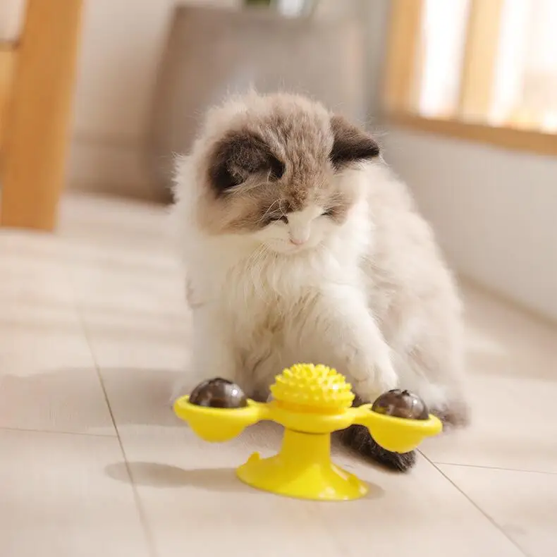 Вращающаяся ветряная мельница интерактивная игрушка для кошек чистка зубов языка