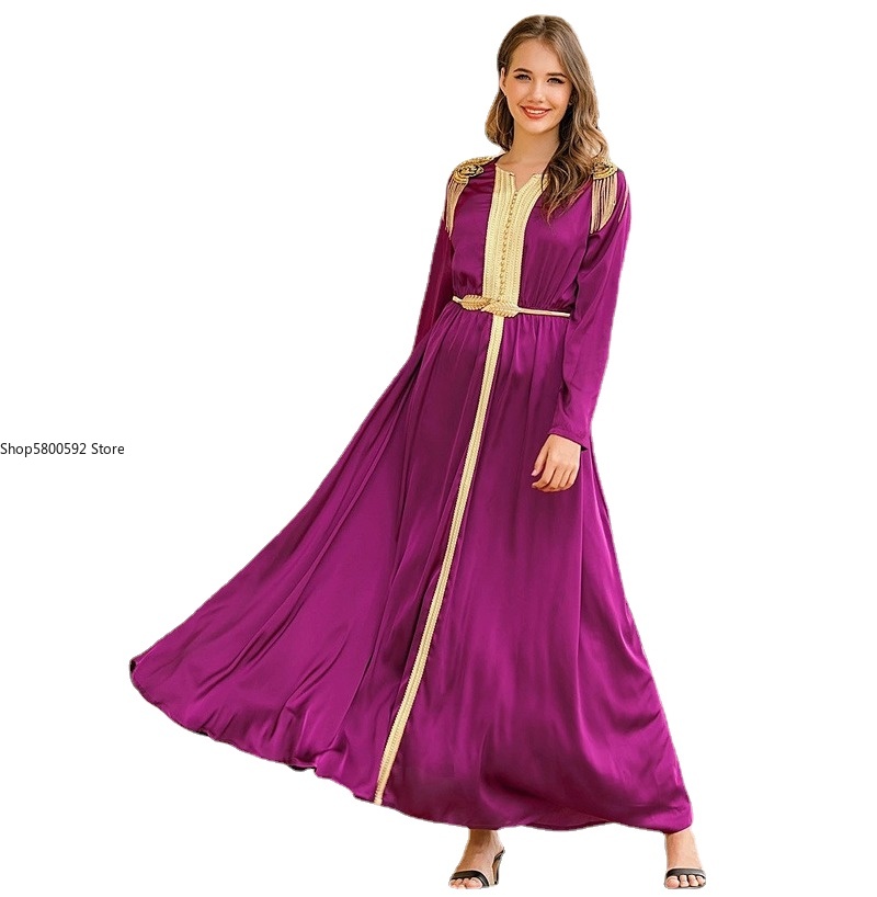 Dubai Abaya Djellaba Moroccan Kaftan Women Diamond Braid Trim Long Sleeve Muslim Hijab Maxi Dress Robe Arabic Islamic Clothes