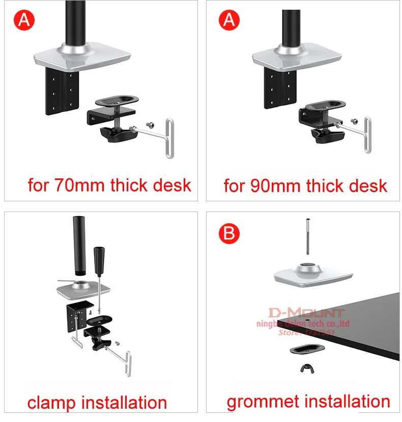 Установка:Настольный зажим: толщина стола в пределах 15-75 мм,