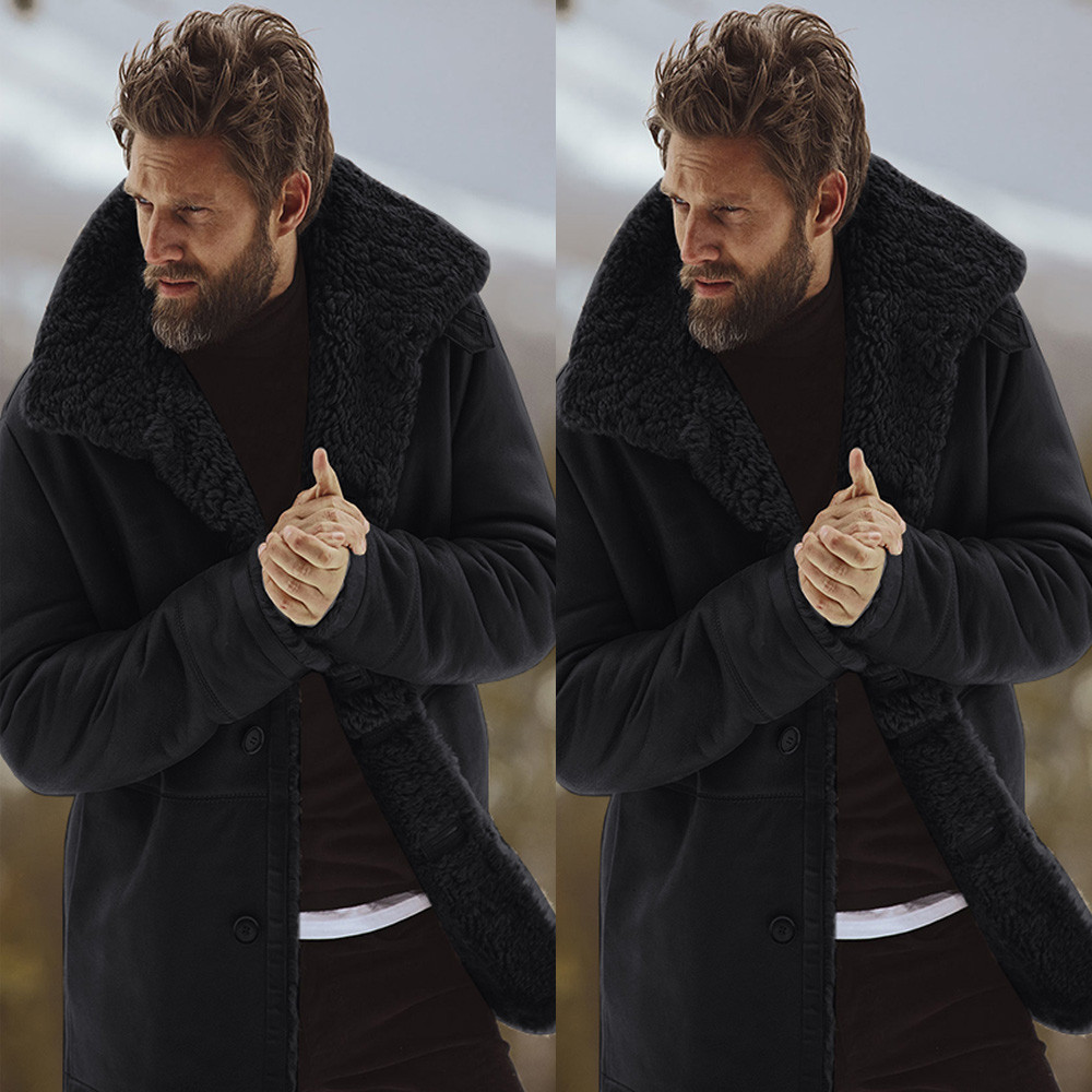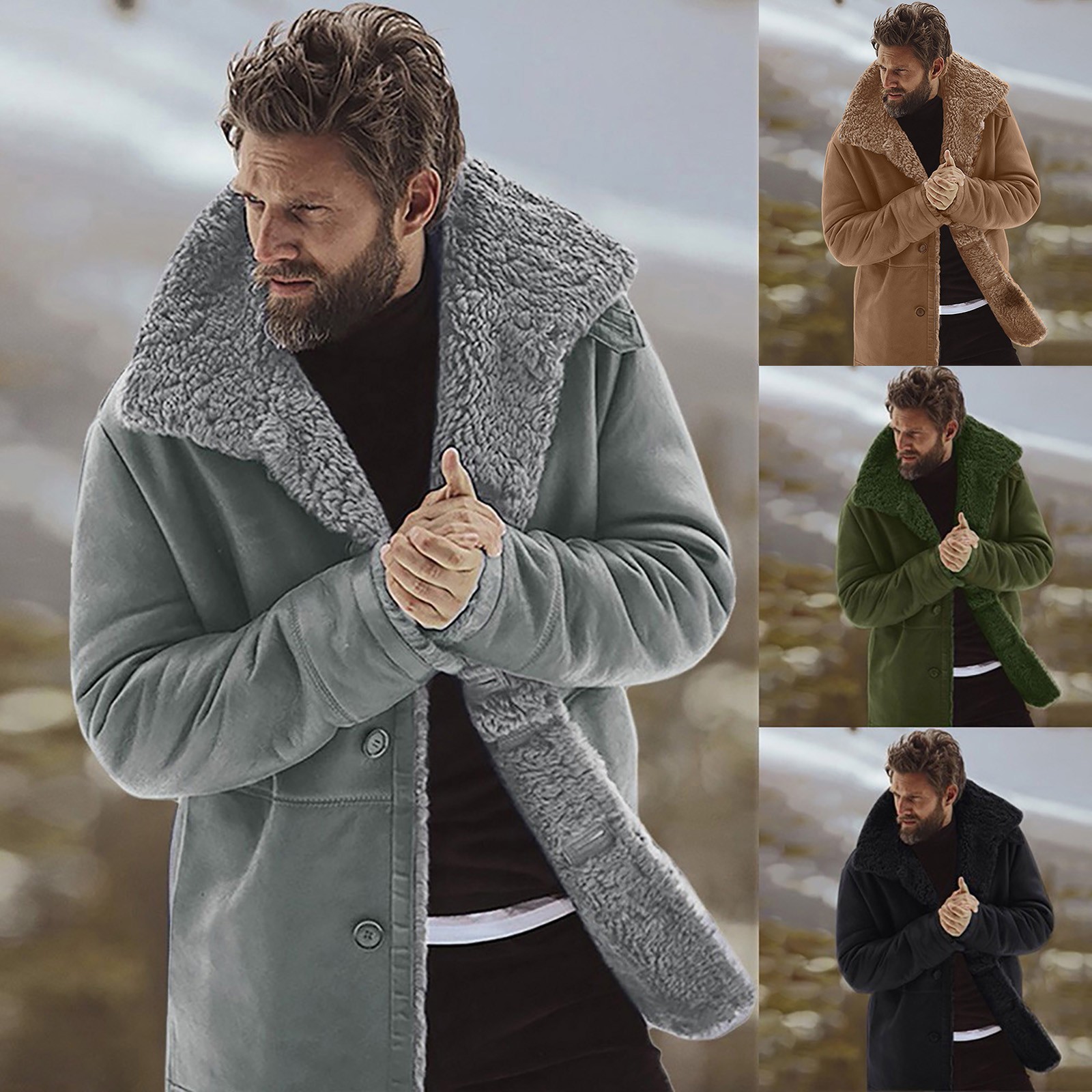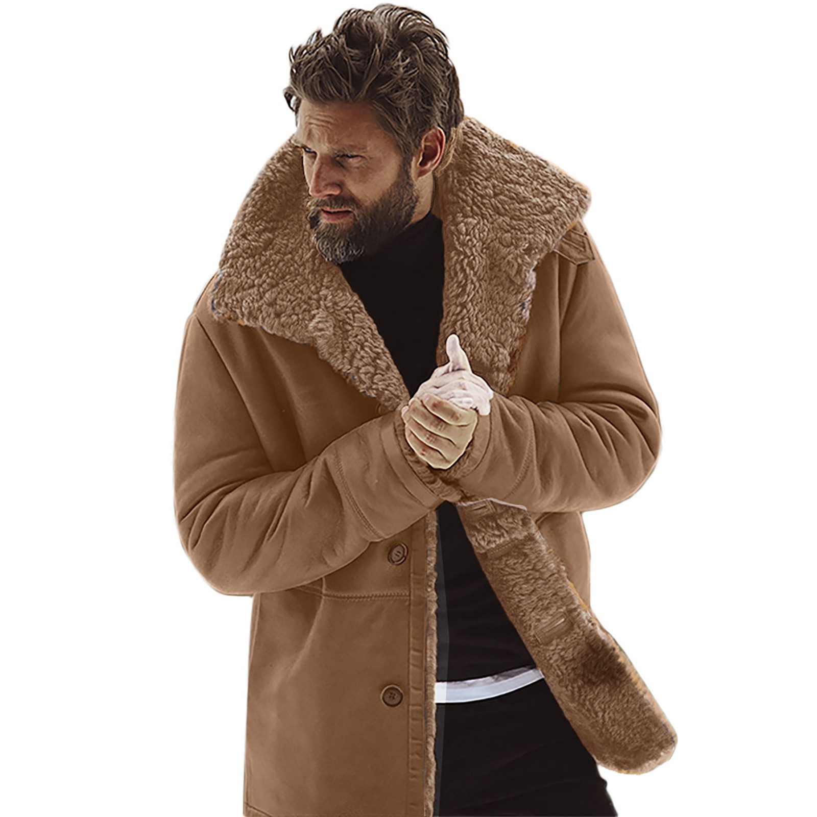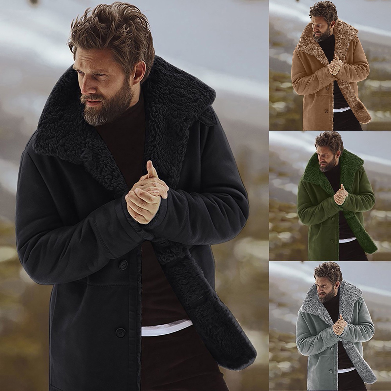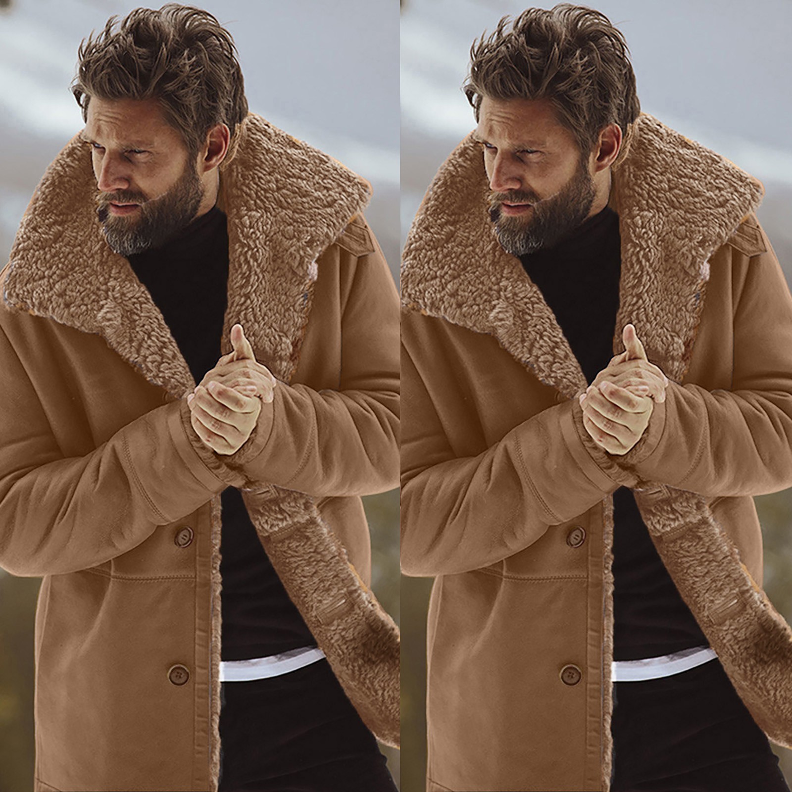 Мужская зимняя куртка из овечьей кожи, теплая шерстяная подкладка, Куртки из искусственной овечьей шерсти