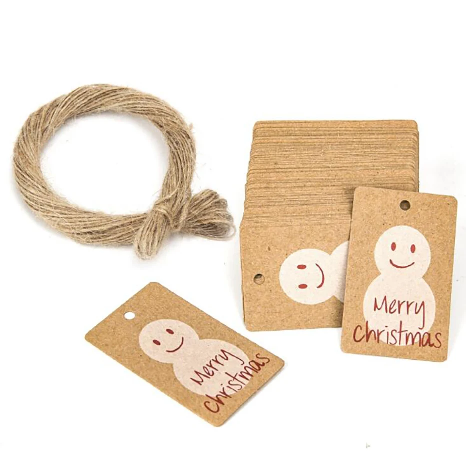 Счастливого Рождества подарок Этикетка бирки шляпа снеговик чулки шаблон записываемый крафт бумажные бирки для подарков с пеньковой веревкой