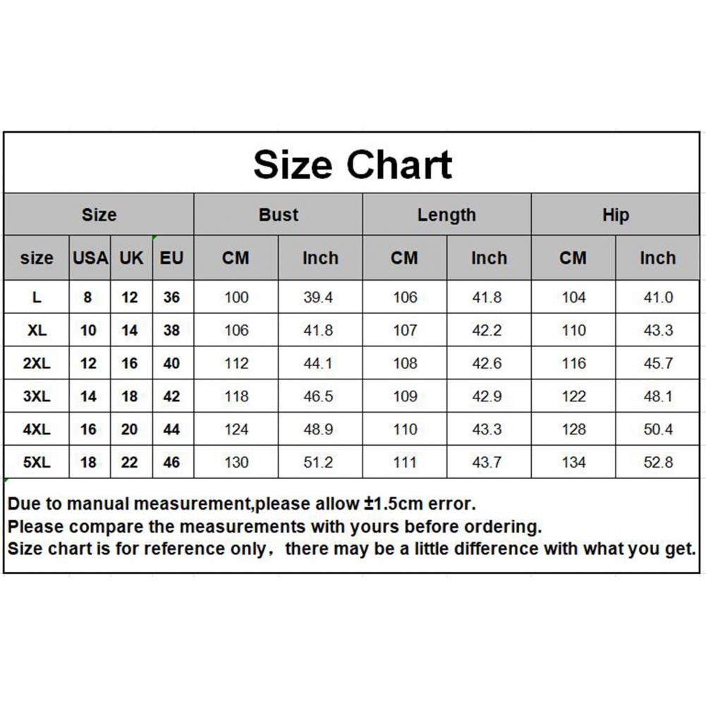 [Наш Размер 5XL] Обхват груди: 130 см/51,2 дюйма, длина: 111 см/43,7 дюйма, обхват бедер: 134 см/52,8 дюйма (приблизительно)