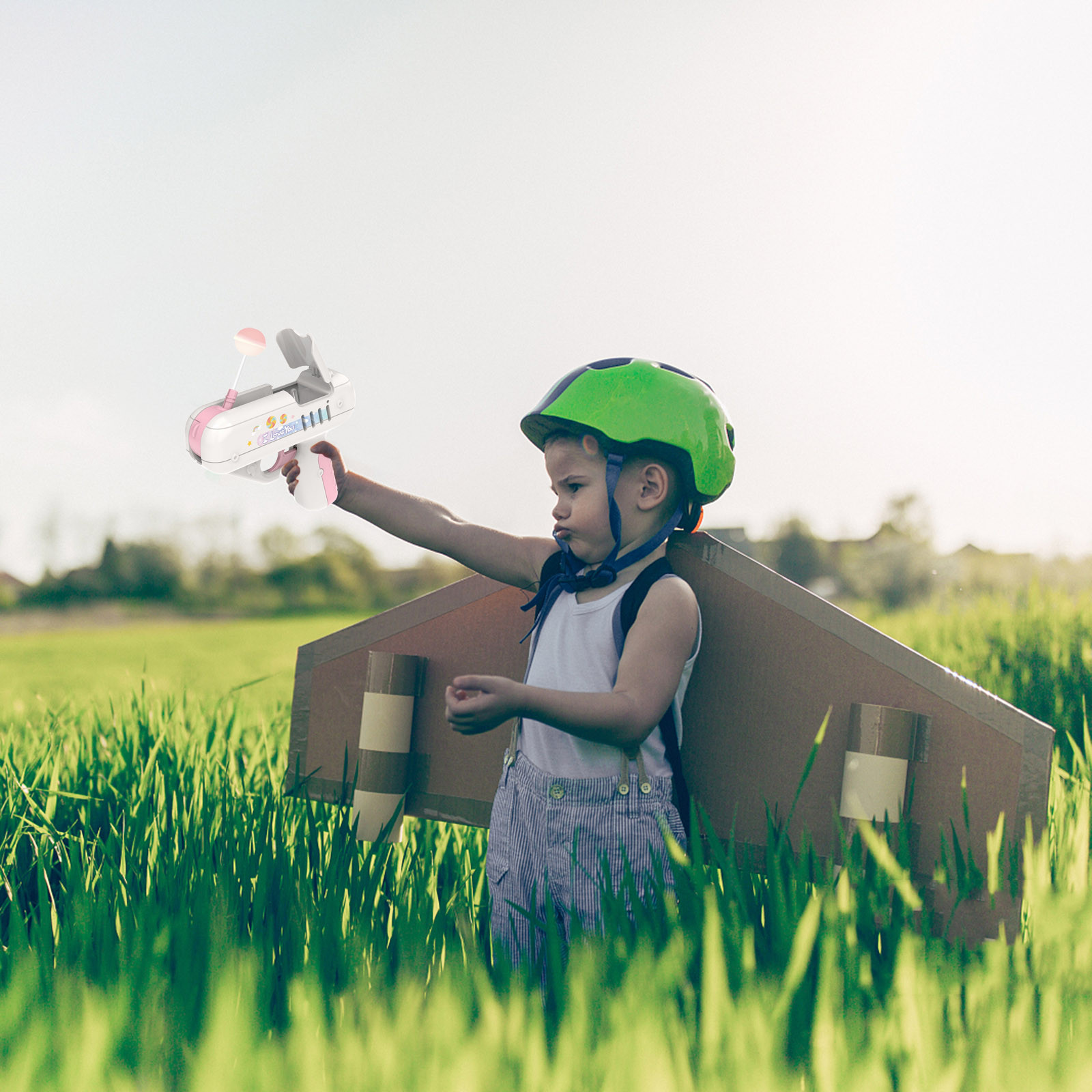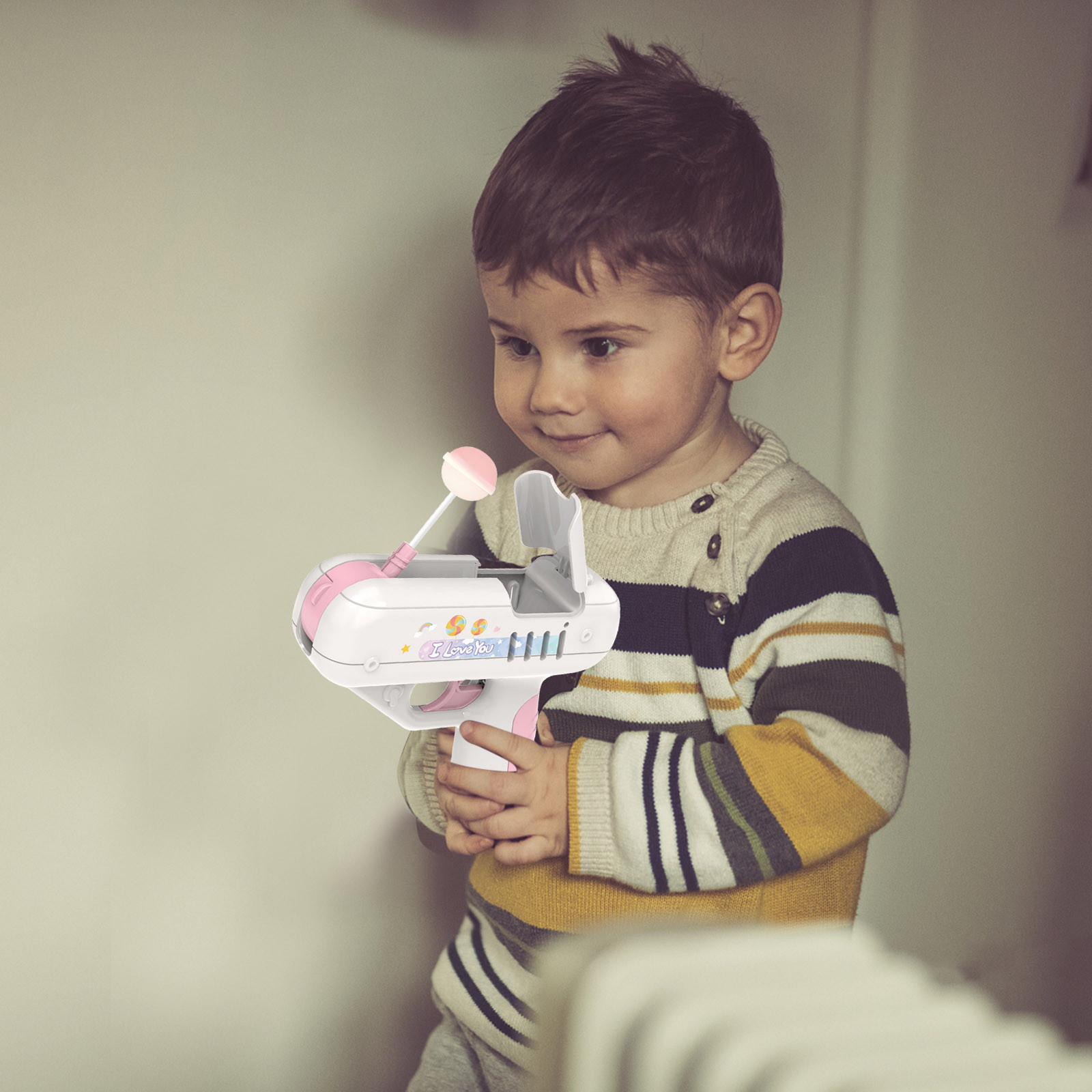 При нажатии выключателя леденец выскакивает с мигающими огнями и