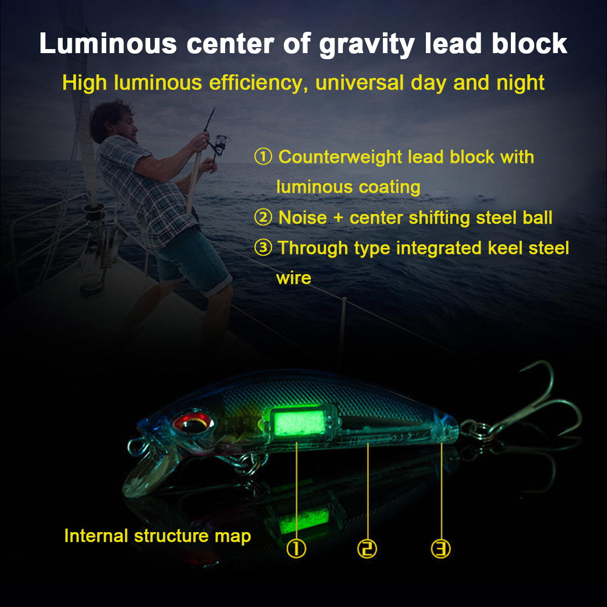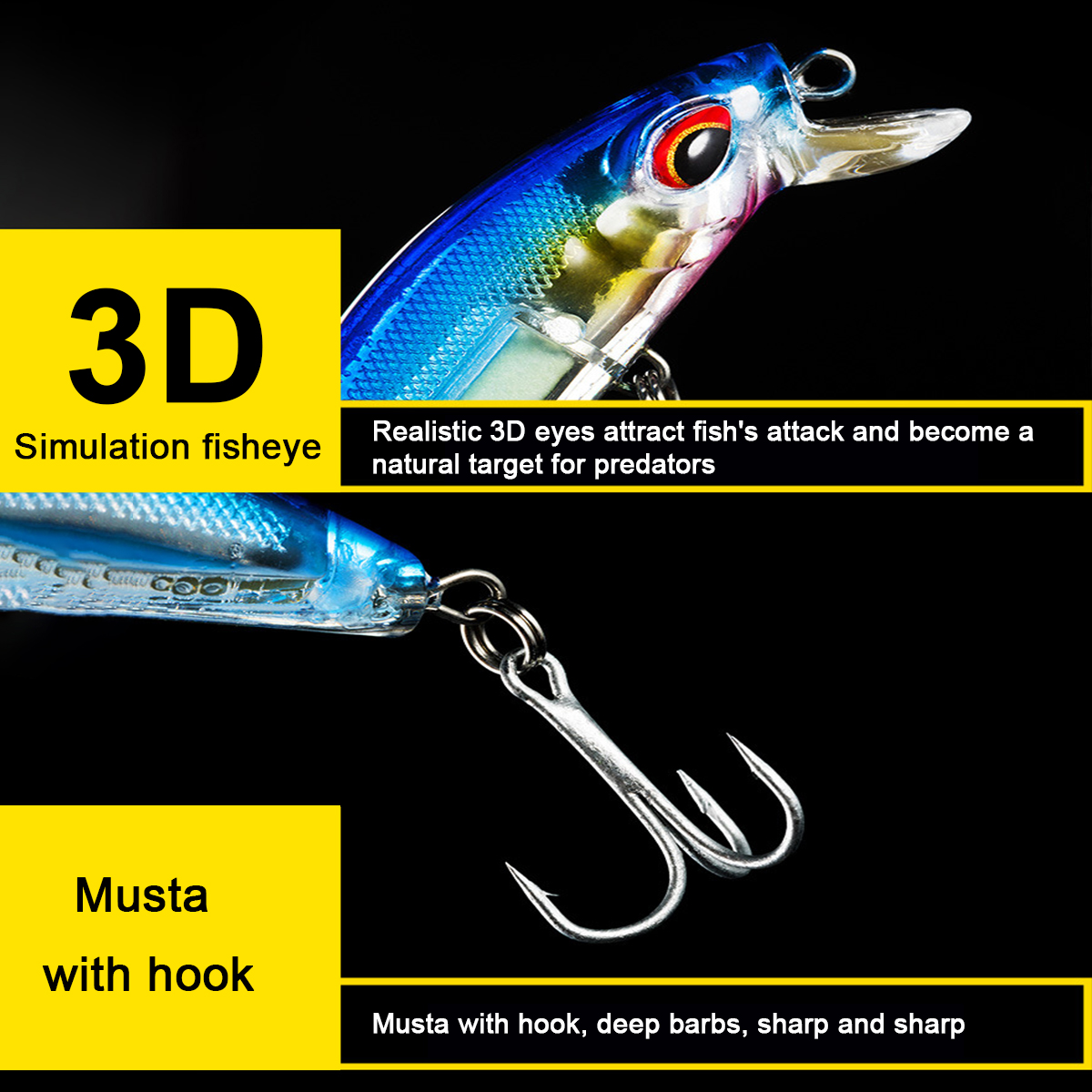 1. Рывок гольян-приманка, предназначенная для морского дна, щуки, аспиуса, желтого окуня и черного окуня.
